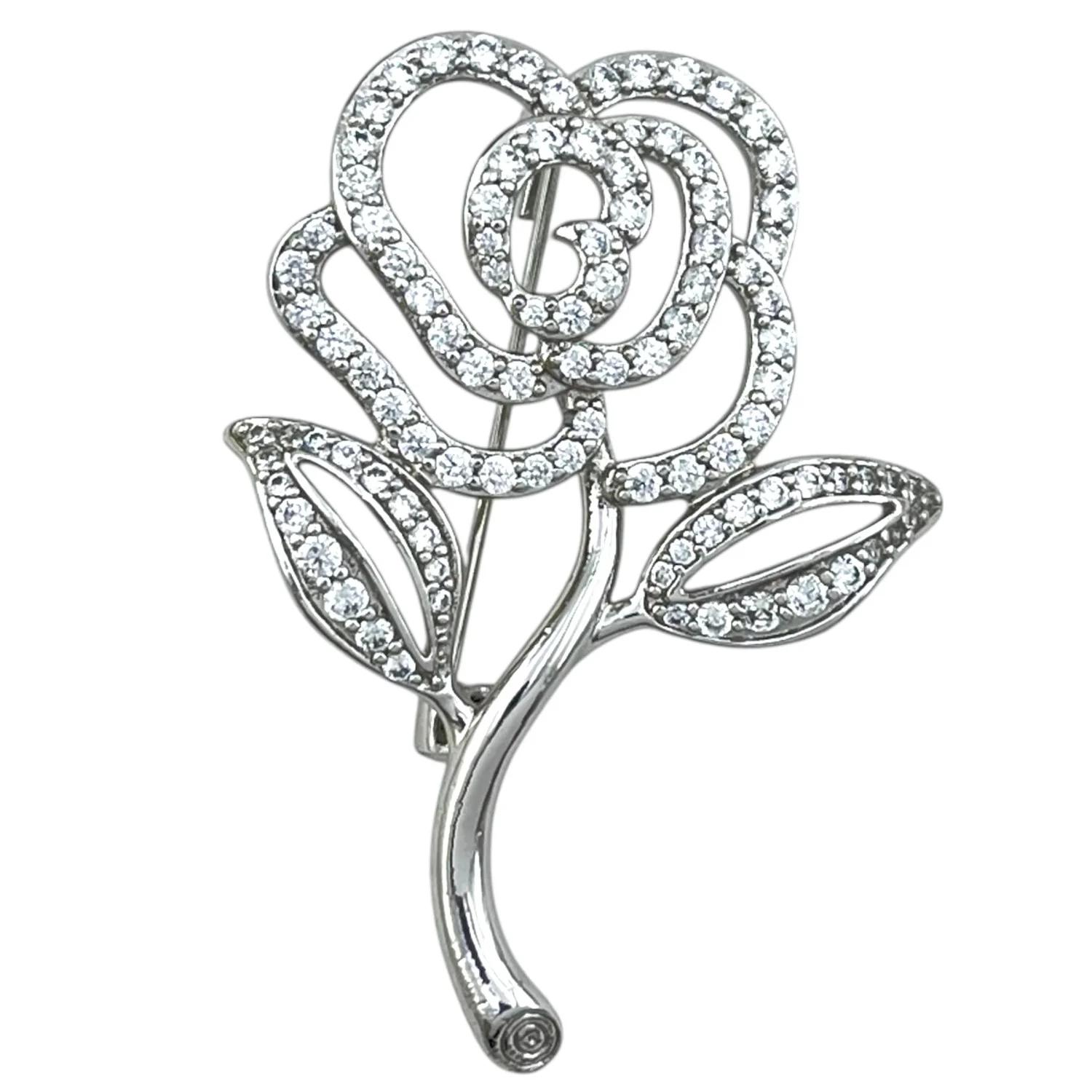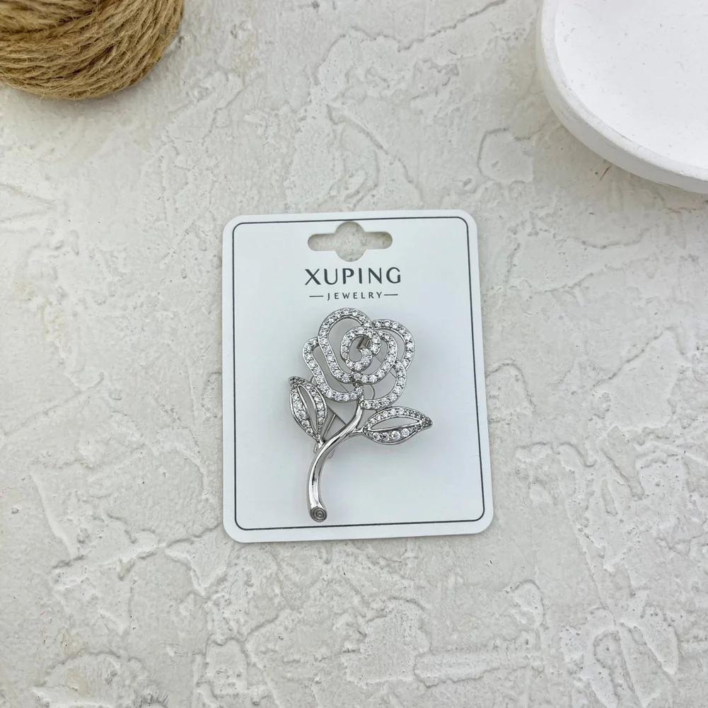 Xuping Floral Brooch "Florienne" - Elegant Silver Flower with Sparkling Stones