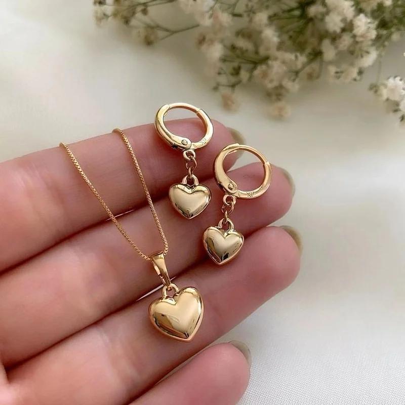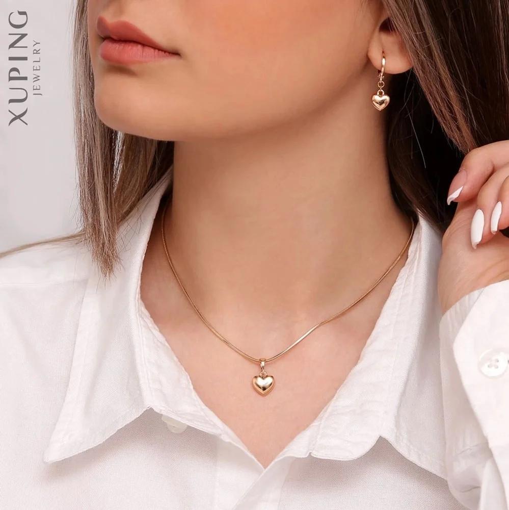 Delicate Heart-Shaped Women's Necklace and Earrings Set by Xuping Brand