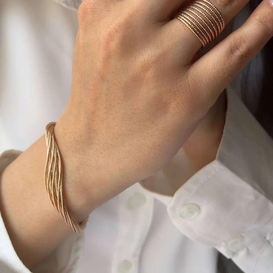 دستبند زنانه طرح طلا بافت چند ردیفه - درخشش بی نهایت