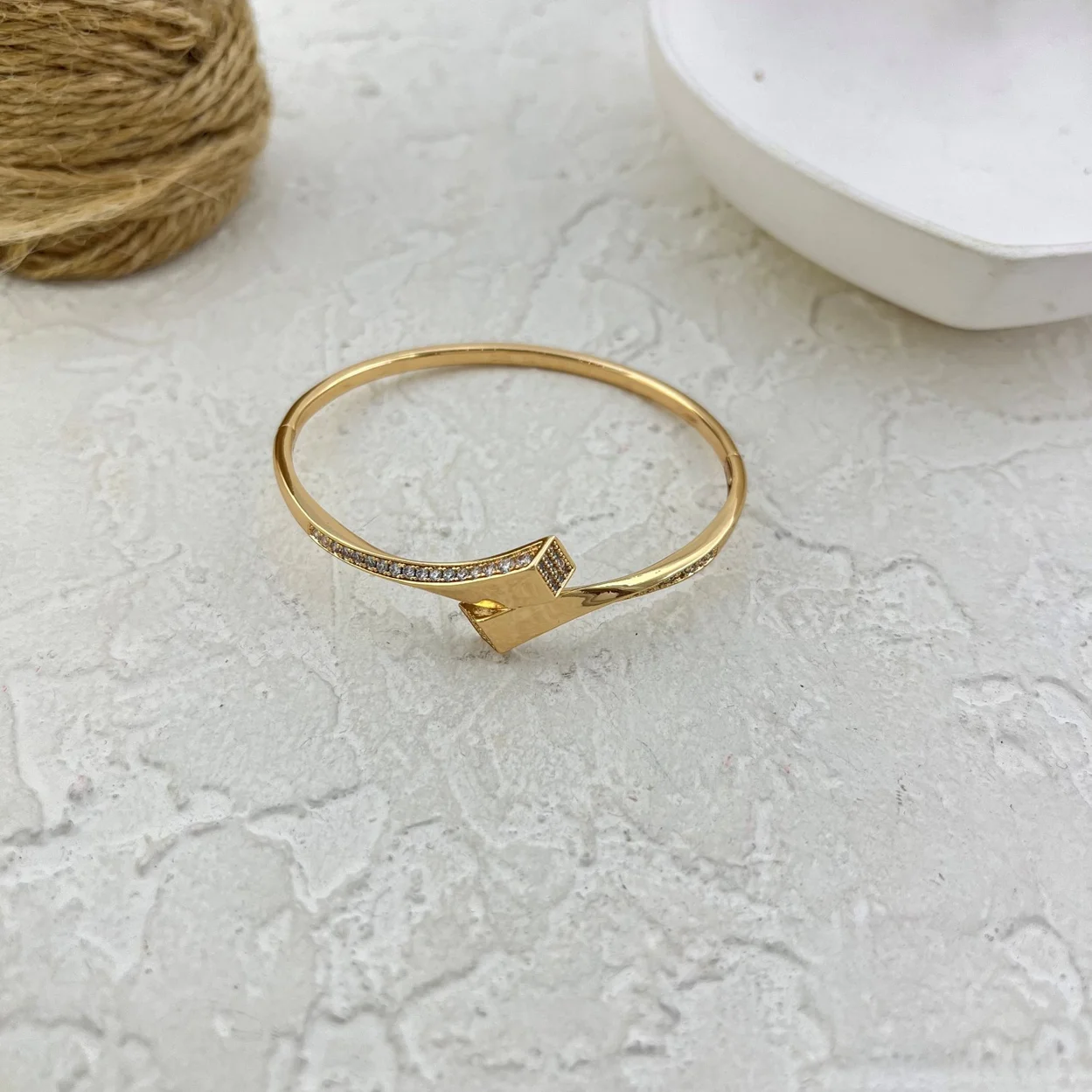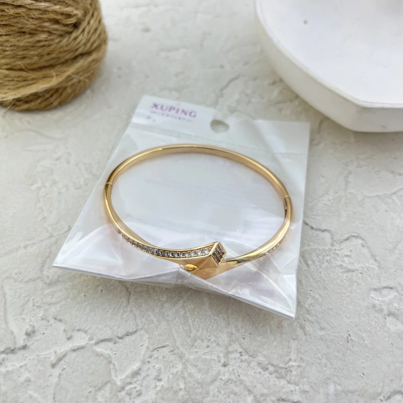Xuping Women's Alovera Luxe Gold-Style Bangle with Delicate Stones and Gold Plating