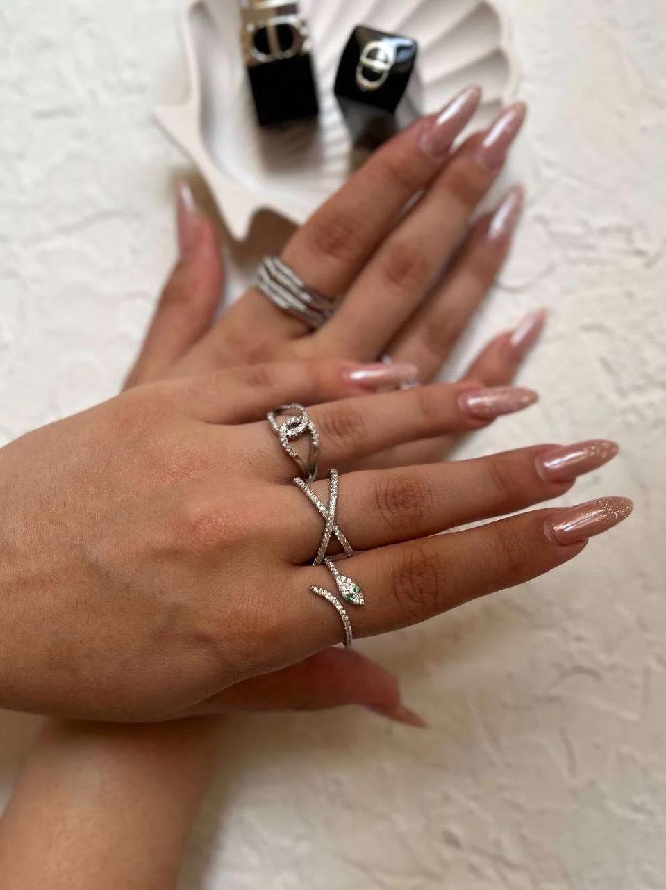 انگشتر زنانه طرح در هم تنیده با نگین های ظریف