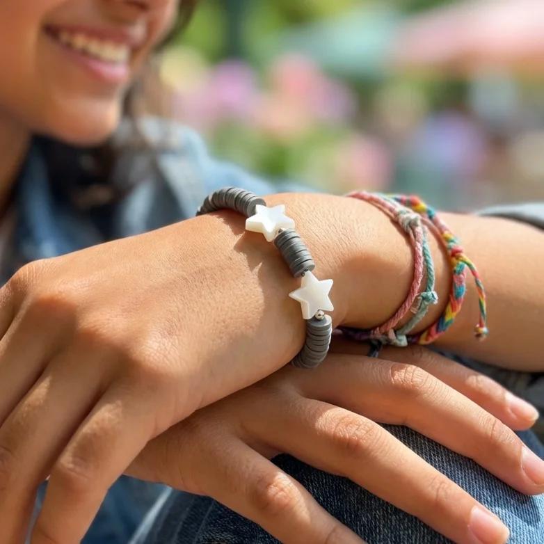 دستبند دخترانه فانتزی مدل صدفی طرح مهتاب خاکستری یک انتخاب خاص و چشمنواز برای دخترانی است که به دنبال زیورآلاتی با طراحی متفاوت و مدرن هستند. این دستبند با استفاده از مهرههای خاکستری مات و آویزهای صدفی به شکل ستاره طراحی شده است که جذابیت خاصی به استایل شما میبخشد. ترکیب رنگ خنثی خاکستری با درخشش طبیعی صدفها، این اکسسوری را به یک همراه مناسب برای هر نوع استایل، از روزمره تا رسمی تبدیل کرده است.