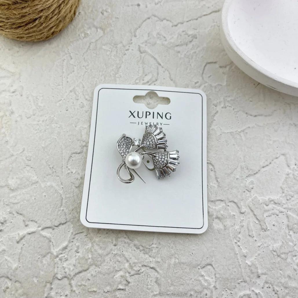 Xuping Women's Brooch "Marvaria" - Luxury Pearl & Crystal Silver-Tone Design