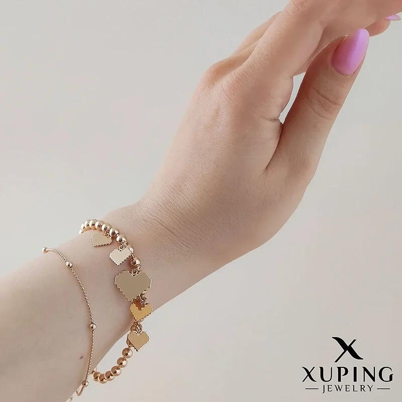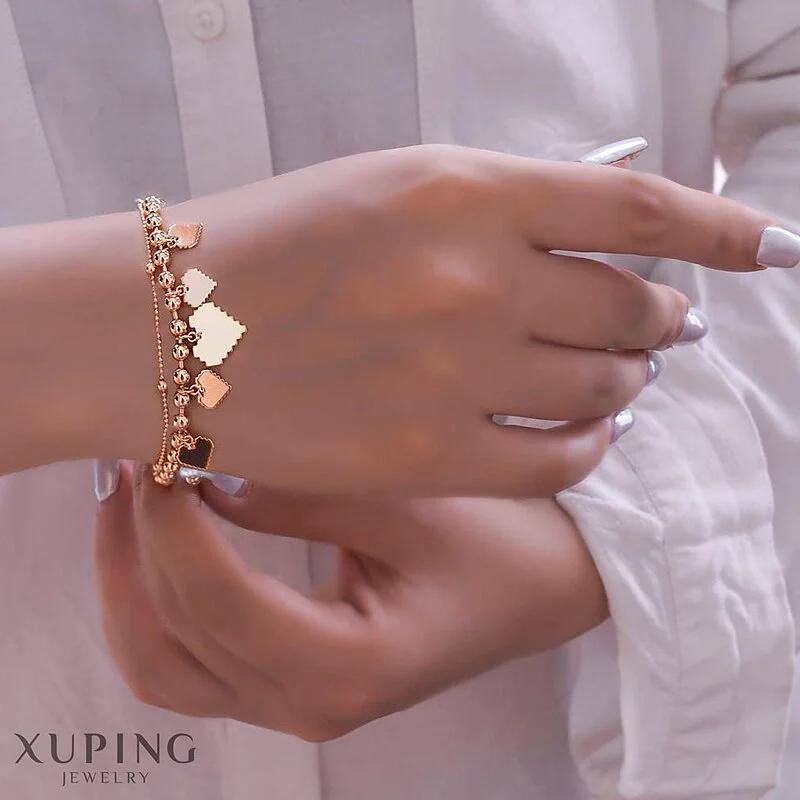 Xuping Double Line Bracelet with Heart and Ball Charms