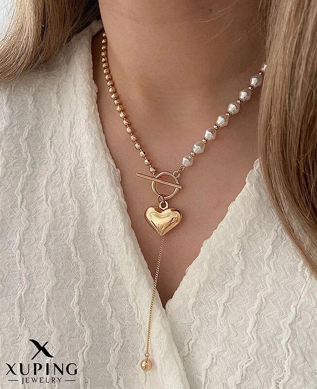 Pearl Necklace with Golden Heart Pendant Xuping