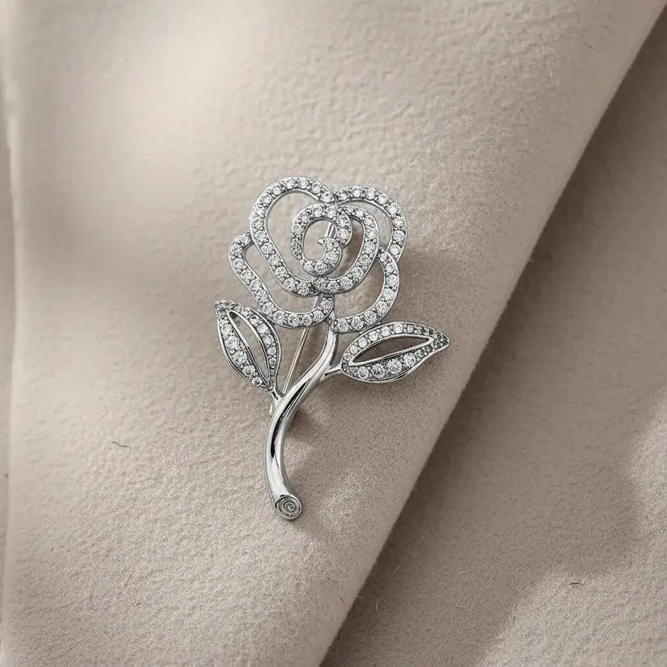 • طراحی ظریف و زنانه: فرم گل و خطوط نرم، این سنجاق سینه را به یک اکسسوری ظریف و دلنشین تبدیل کرده است.