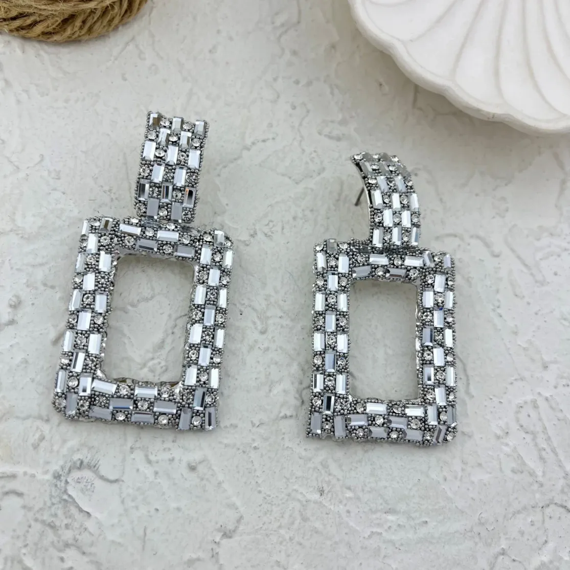 گوشواره زنانه جواهری طرح آینه، درخشش خیره کننده