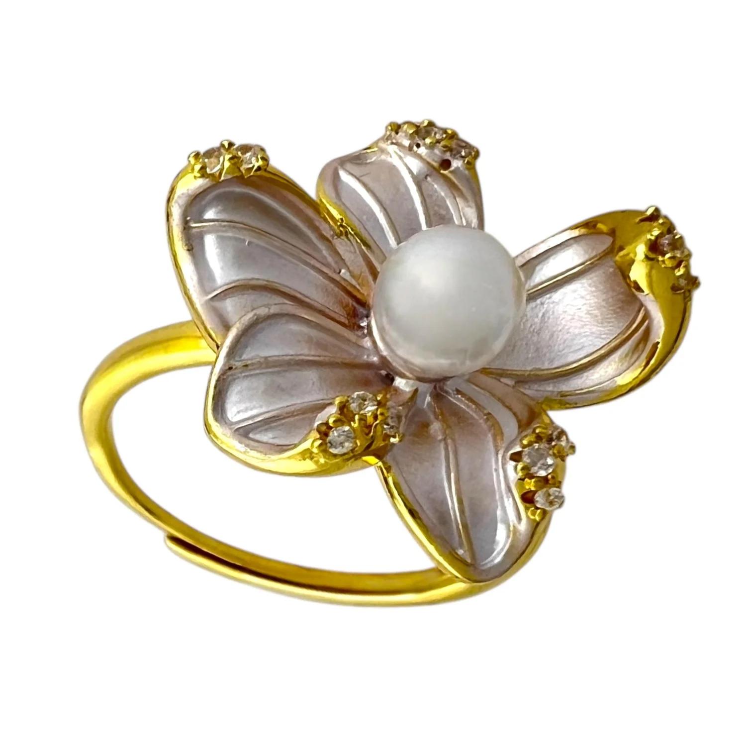 انگشتر زنانه طرح گل میناکاری رنگی با مروارید ظریف