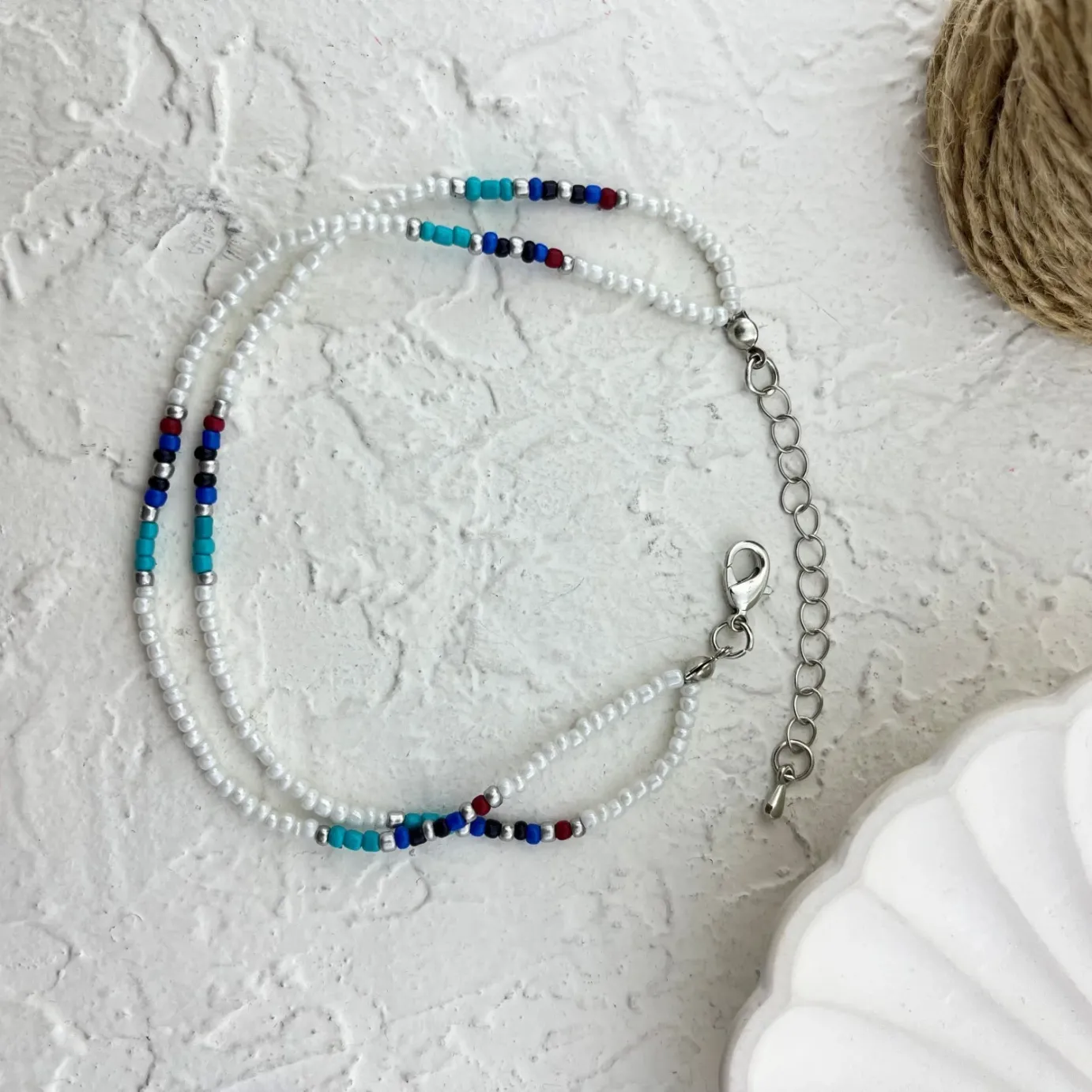 پابند زنانه ظریف با طرح مروارید و مهره های رنگی زیبا