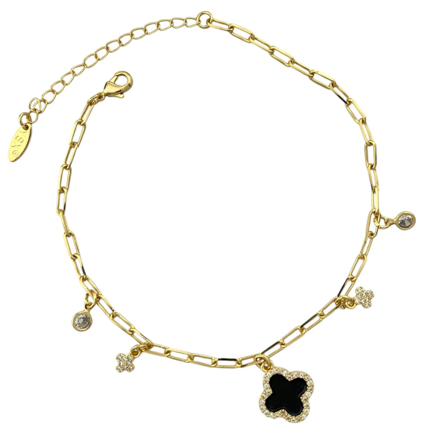 Women's Van Cleef Style Anklet with Delicate Charms and Golden Chain