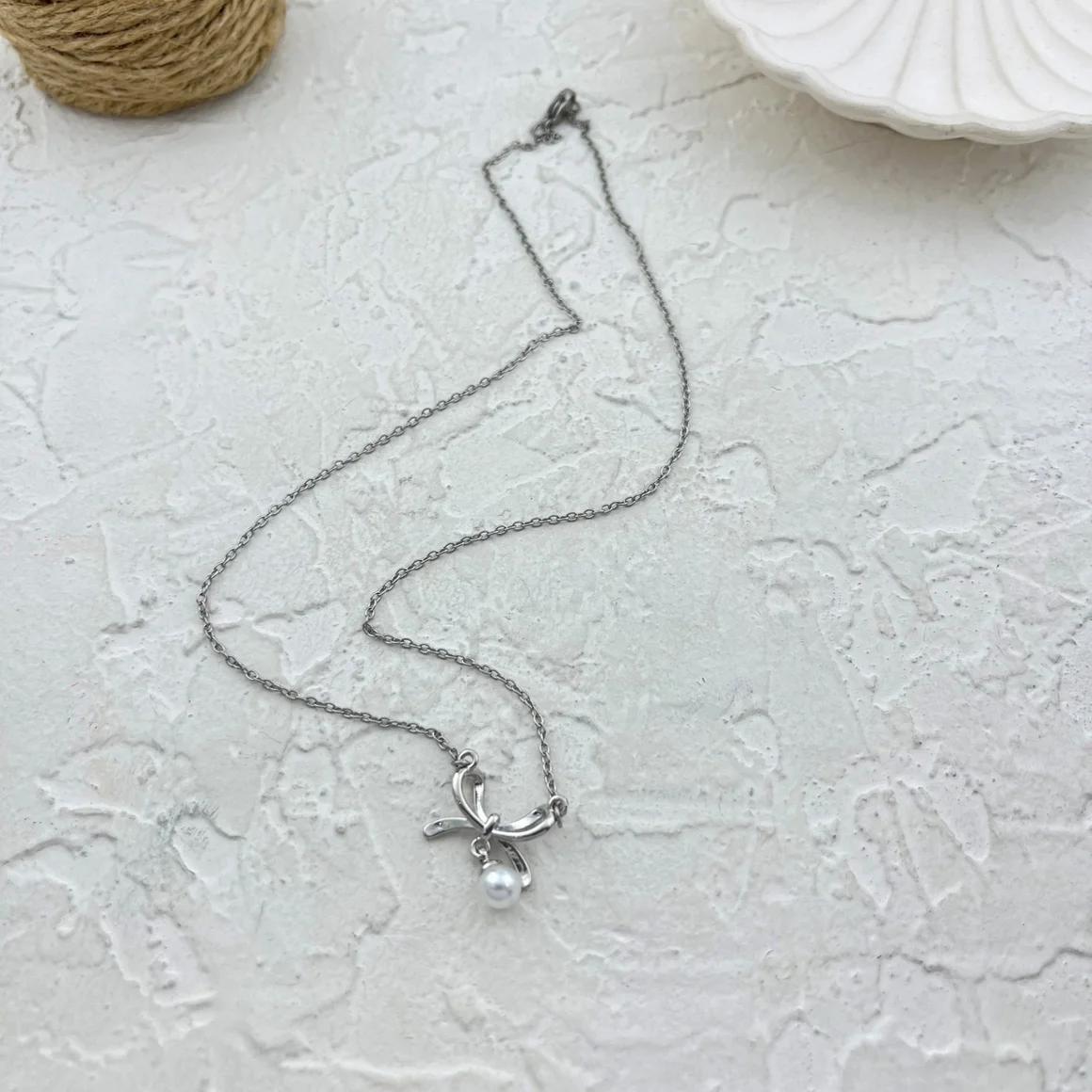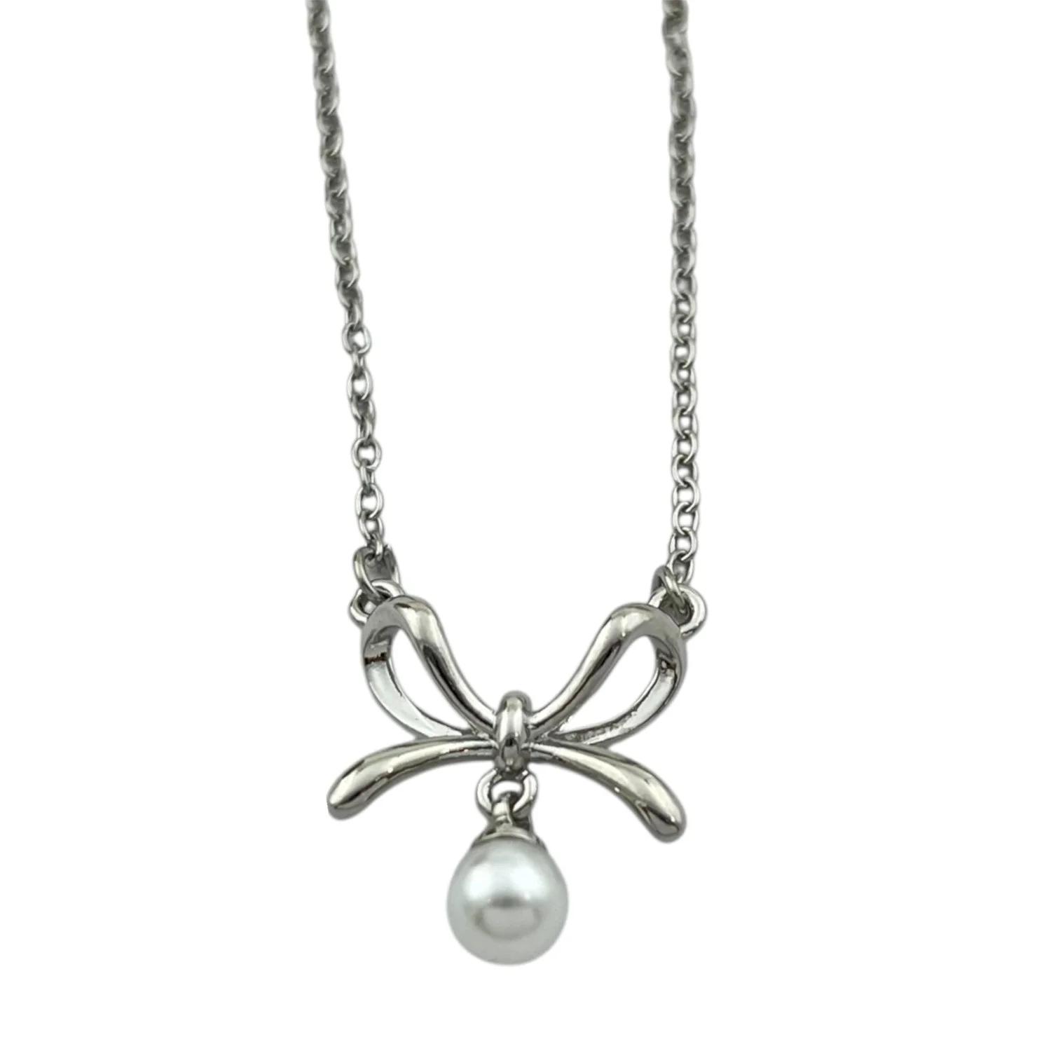 Women's Bow Design Necklace with Pearl Pendant
