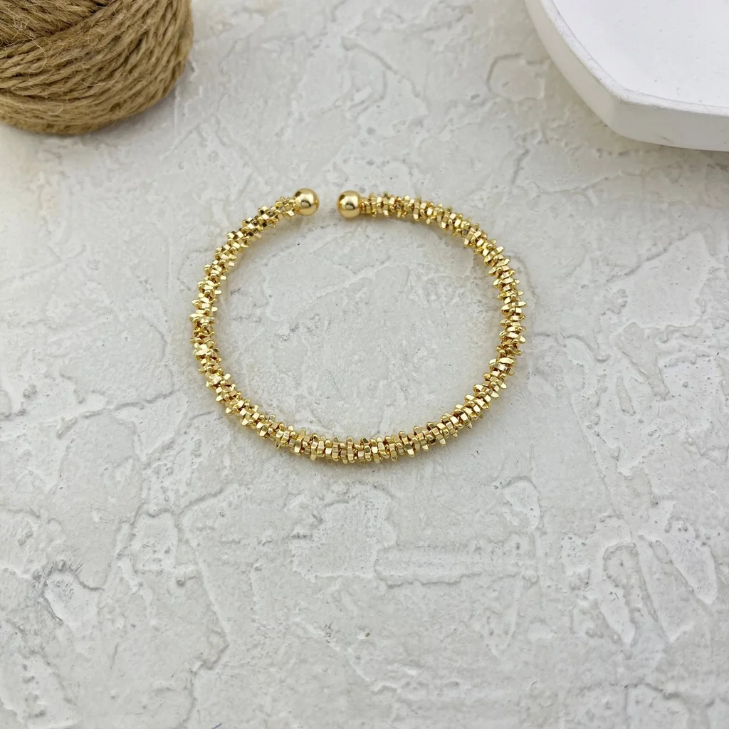 Women's Bangle Bracelet "Goldivelle" - Elegant Gold Caviar-Bead Texture Design