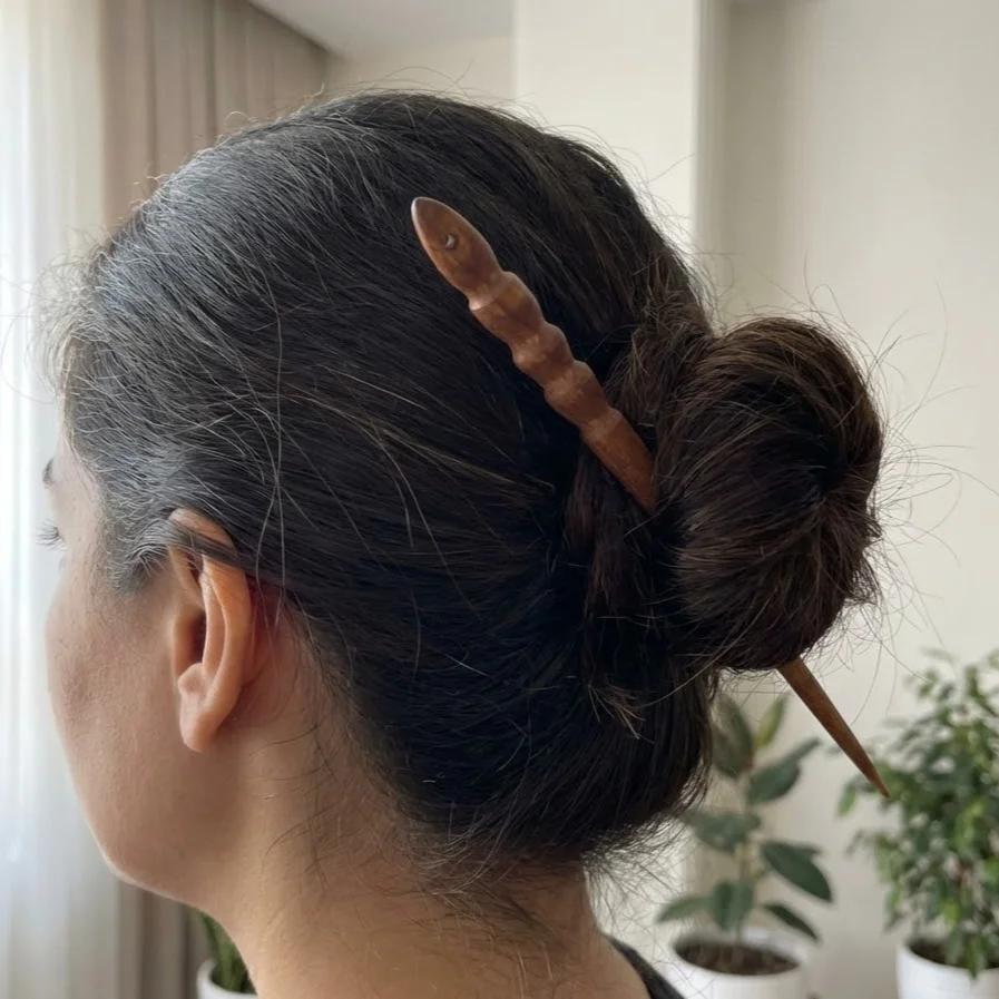 Women's Twisted Wooden Kanzashi Hair Stick - Reva Model