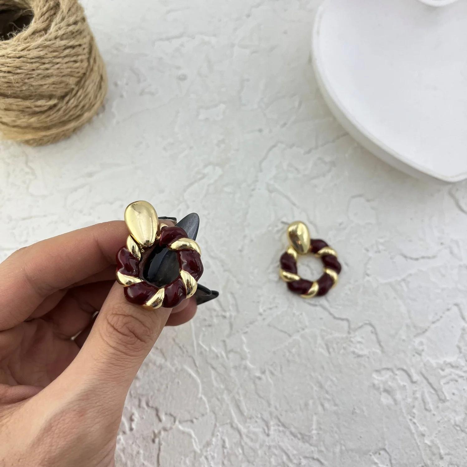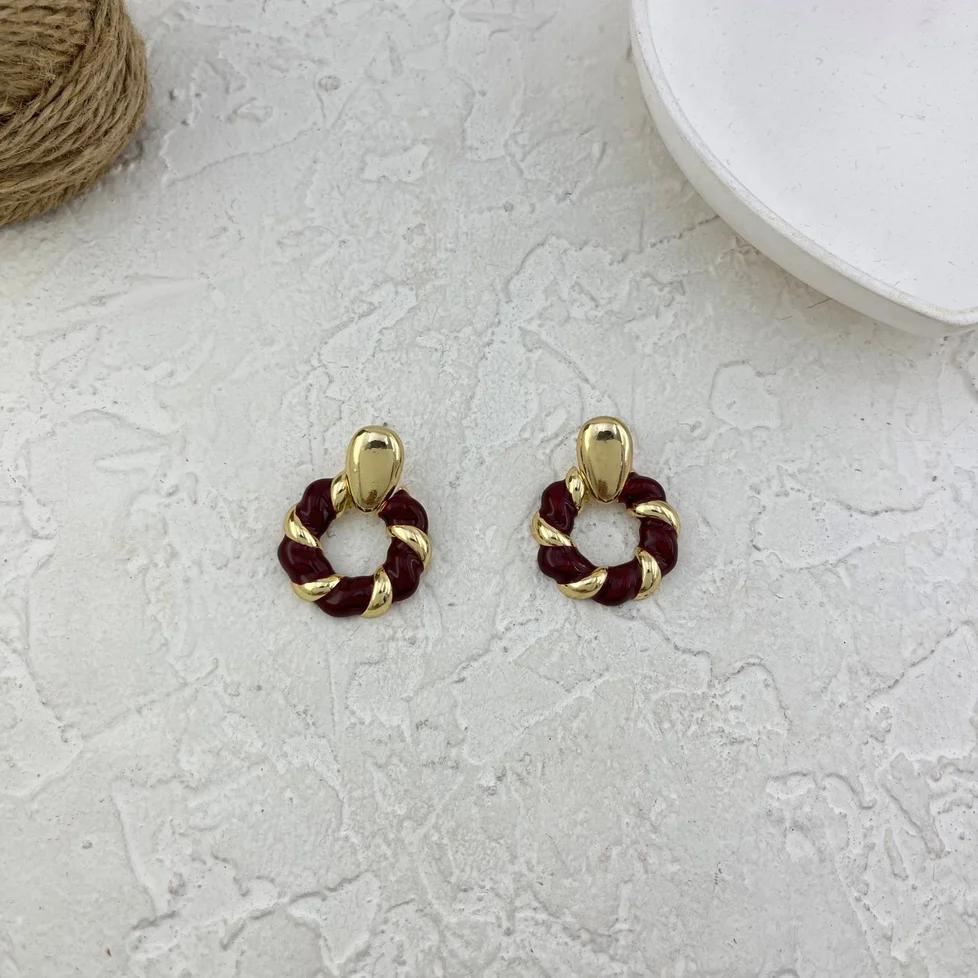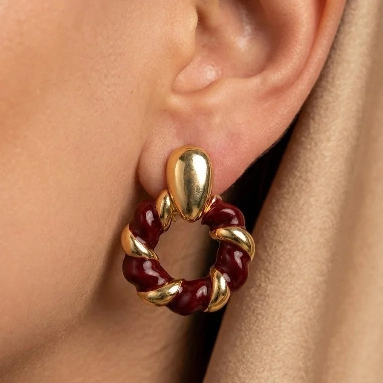 Pichara Women's Burgundy Twisted Enamel Earrings with Gold Frame