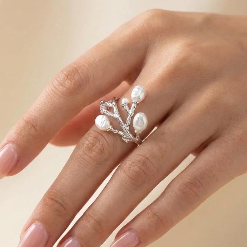 انگشتر زنانه مینیمال طرح برگ مروارید