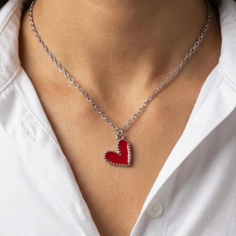 گردنبند فانتزی دخترانه استیل طرح قلب رنگی