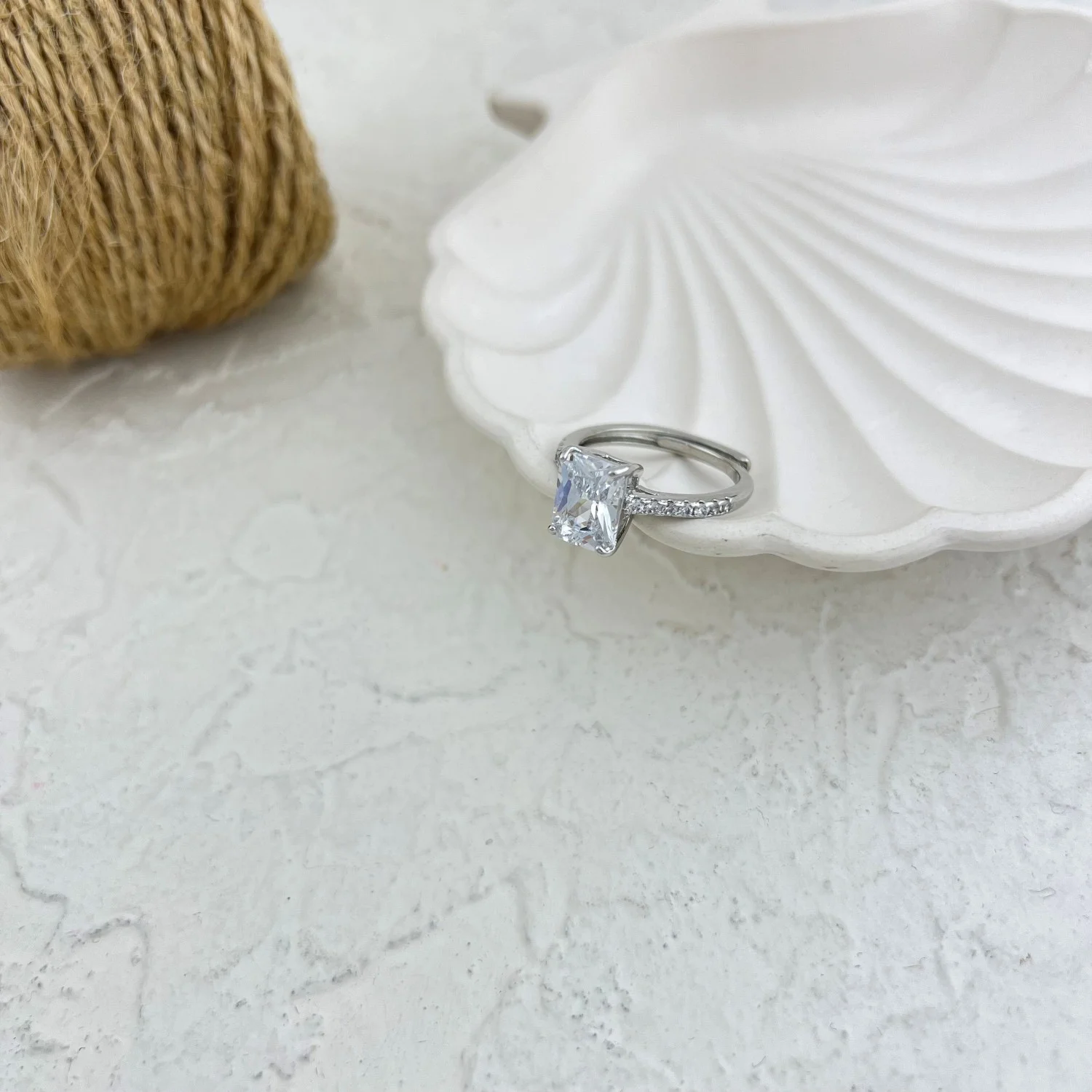 انگشتر زنانه طرح سولیتر جواهری با نگین امرالد