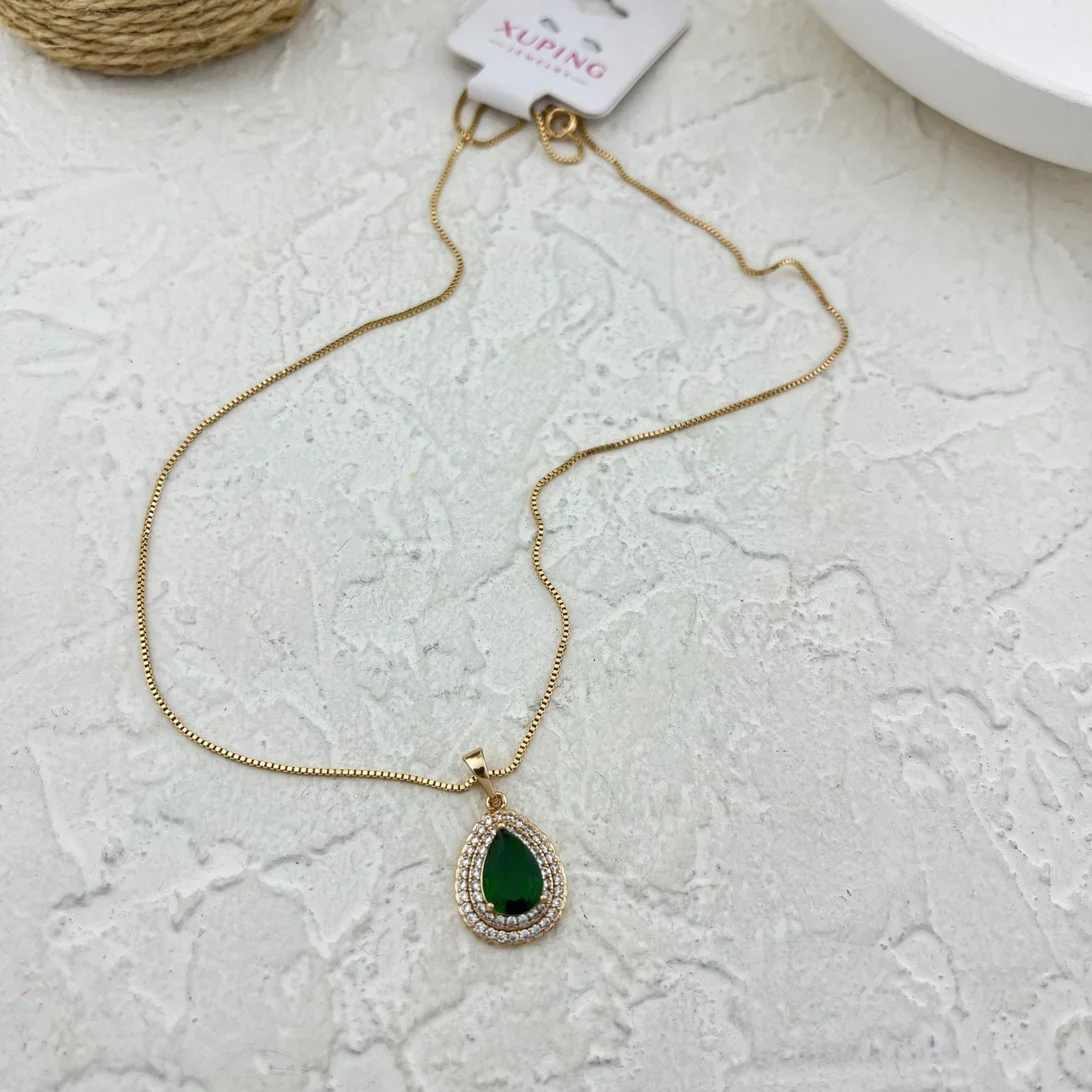گردنبند زنانه با طرح زمرد سبز و نگین ژوپینگ