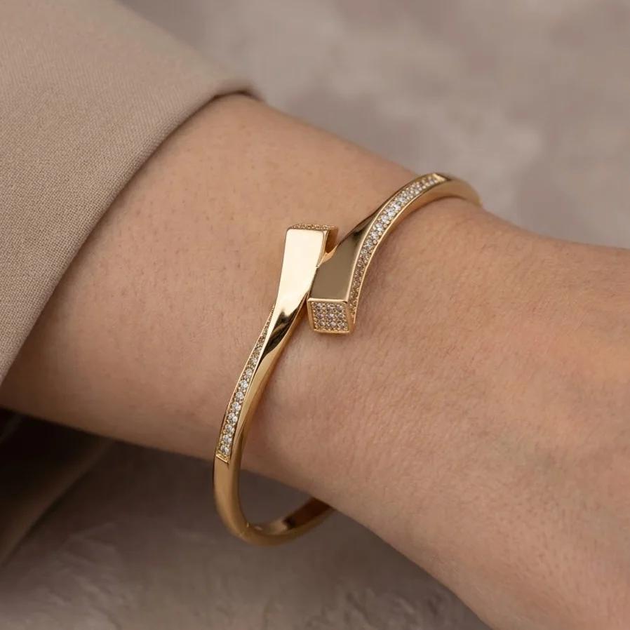 این دستبند زنانه با طراحی خاص و جلوهی طلایی، انتخابی ایدهآل برای تکمیل استایل شماست. نگینهای ظریف به کار رفته در این دستبند، درخشش و زیبایی آن را دوچندان کرده و آن را به یک اکسسوری چشمنواز تبدیل کرده است. این دستبند با طراحی بنگل مدرن، به راحتی با انواع لباسها ست میشود و میتواند در مهمانیها، دورهمیها و استفاده روزمره، همراه شما باشد.
