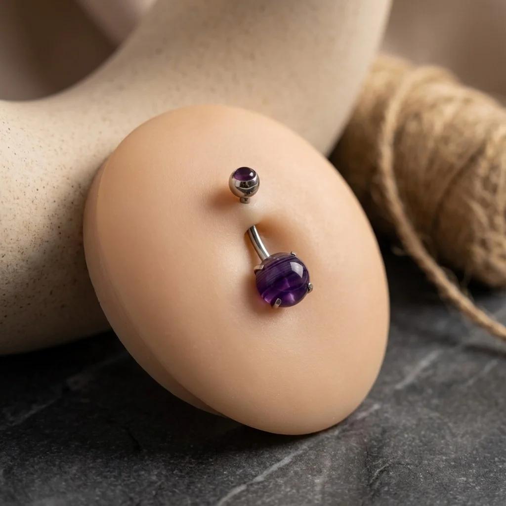 Women's Stainless Steel Navel Piercing with Purple Gemstone