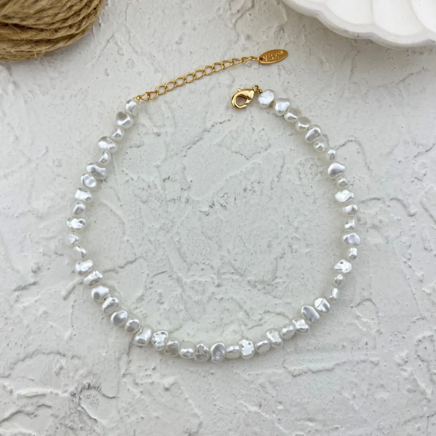 Women's Anklet with Delicate Pearl Design and Plated Finish