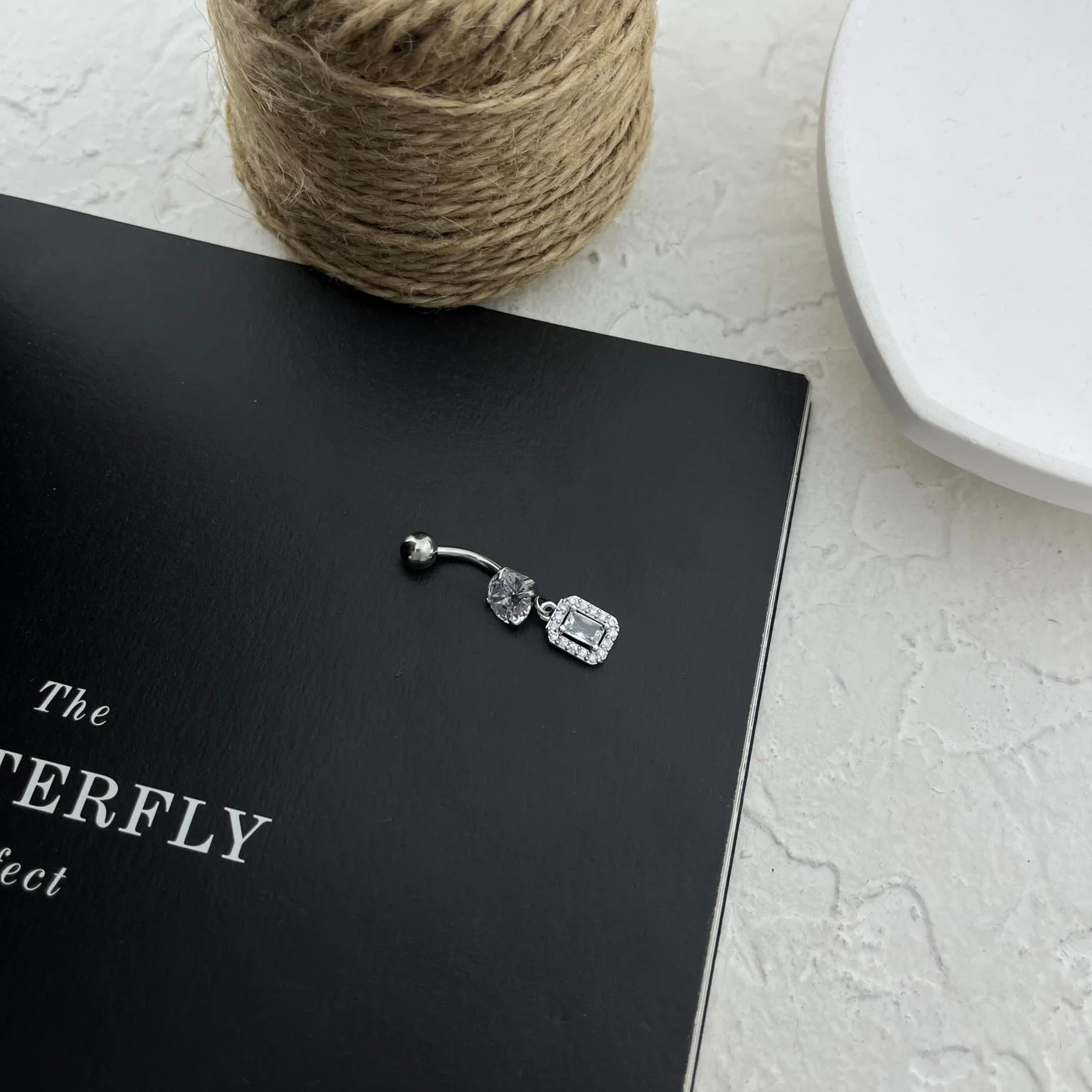 پیرسینگ ناف نگیندار طرح مربع جواهری