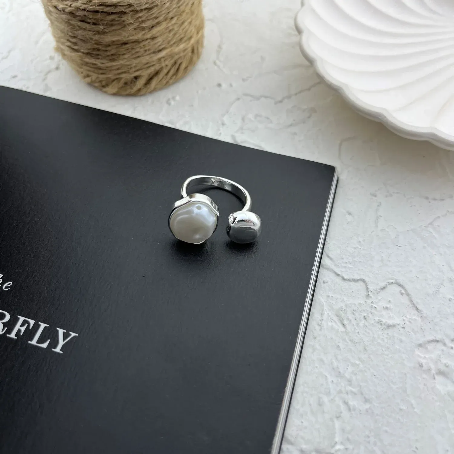انگشتر زنانه مینیمال با طرح مروارید آب نقره