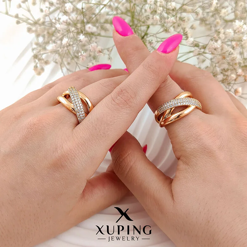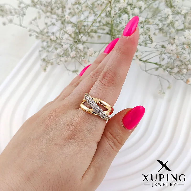 Xuping Gold Plated Oblique Ring with Rhinestones