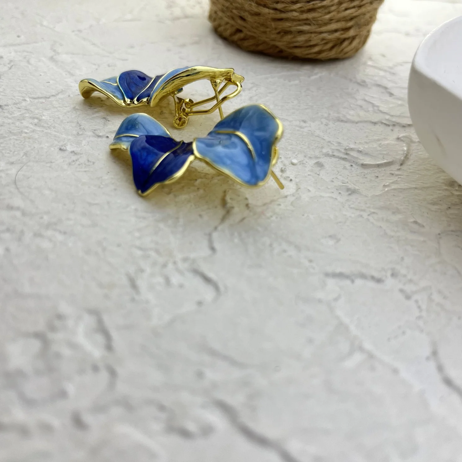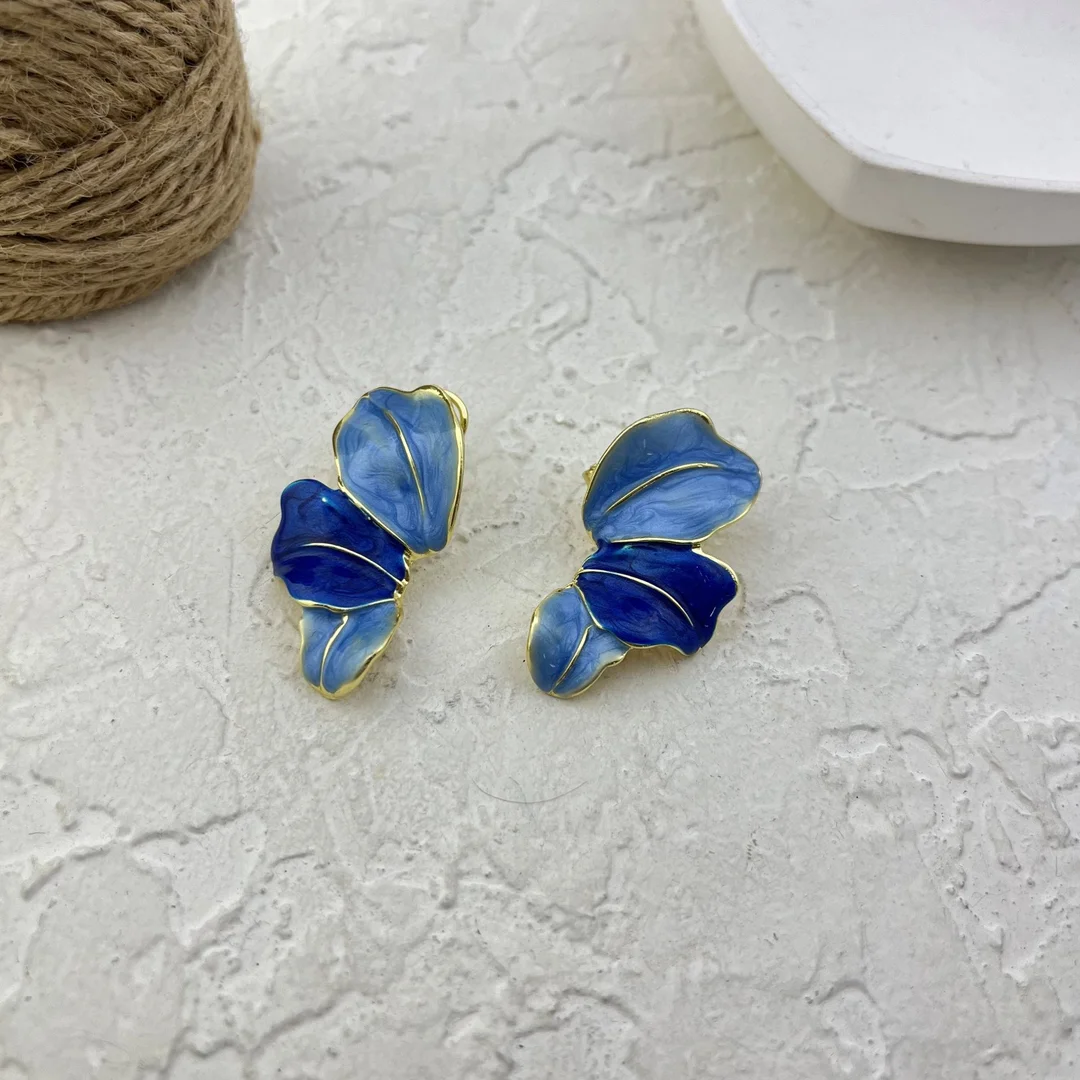 Women's Earrings "Nila" - Blue Enamel Petal Design with Golden Details