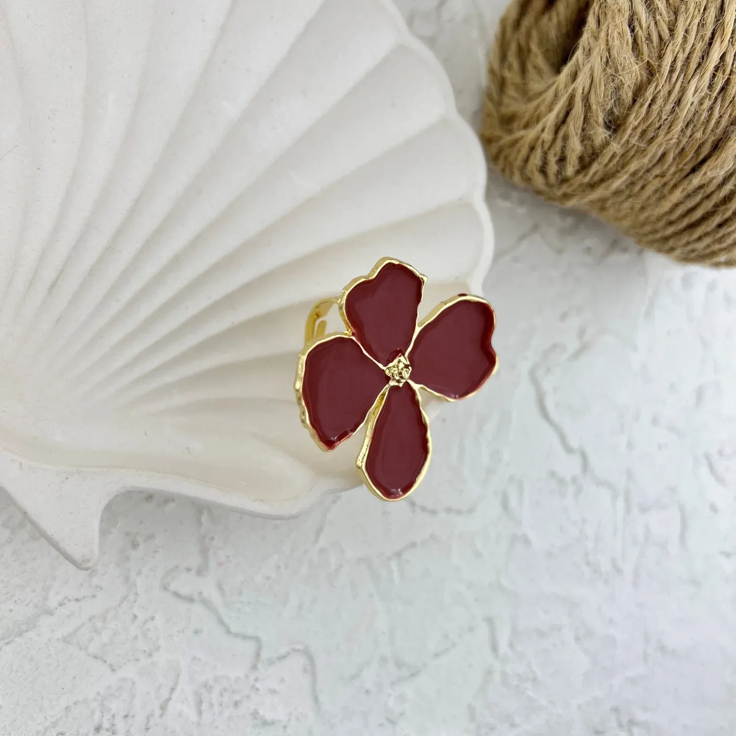 انگشتر زنانه مدل میناکاری گل با طراحی خاص و رنگ جذاب