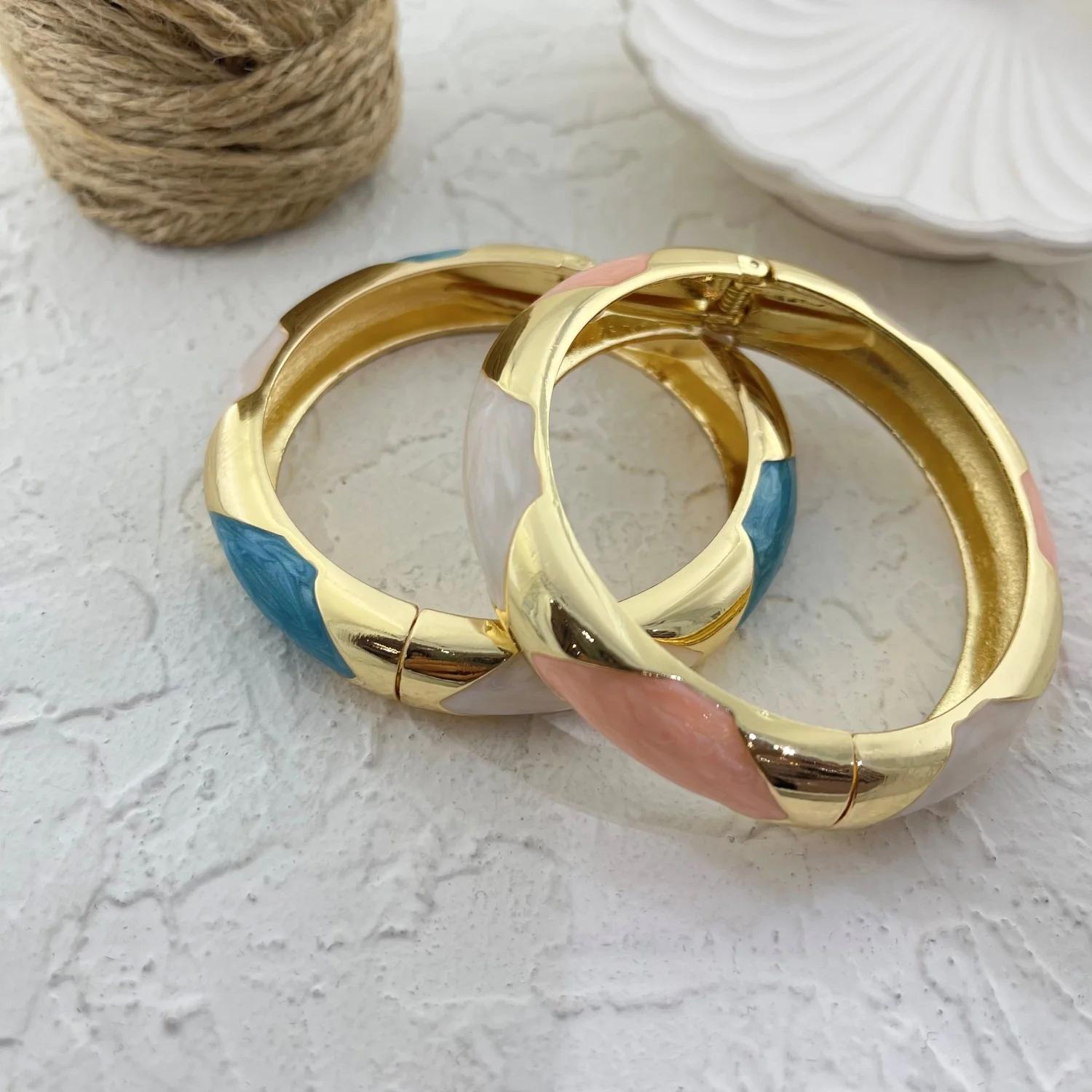 دستبند زنانه بنگل با طرح میناکاری ظریف و رنگ های چشم نواز