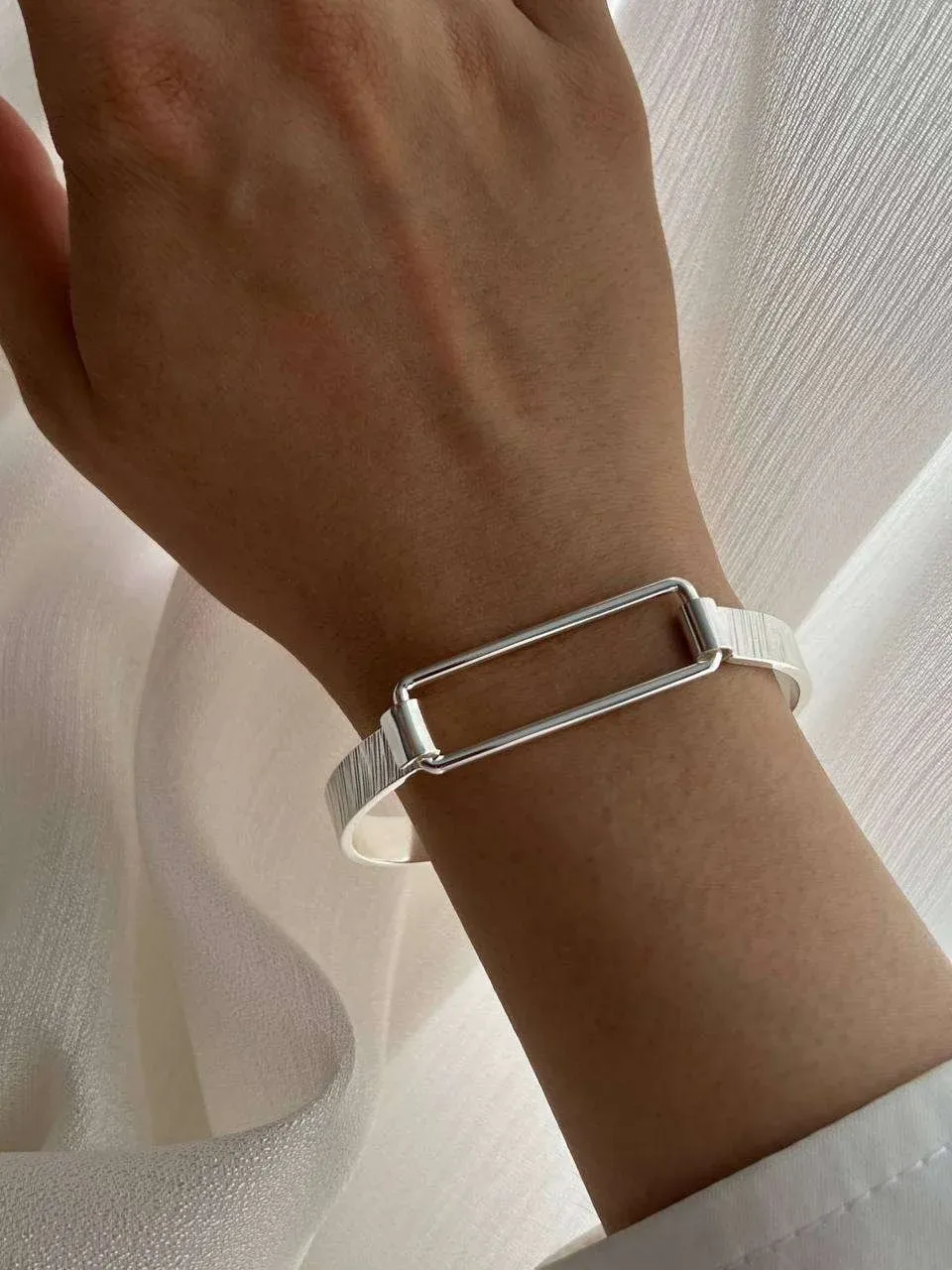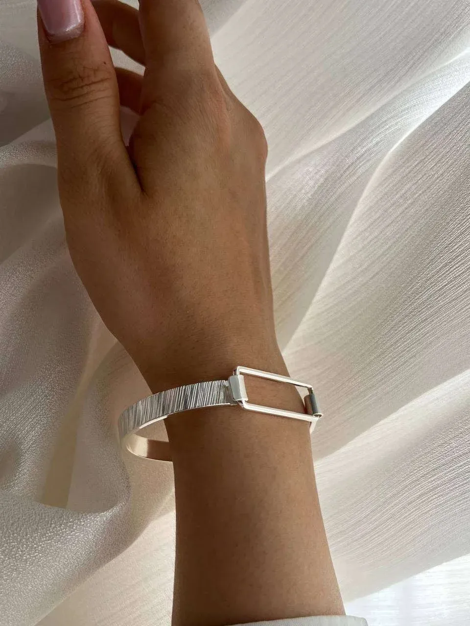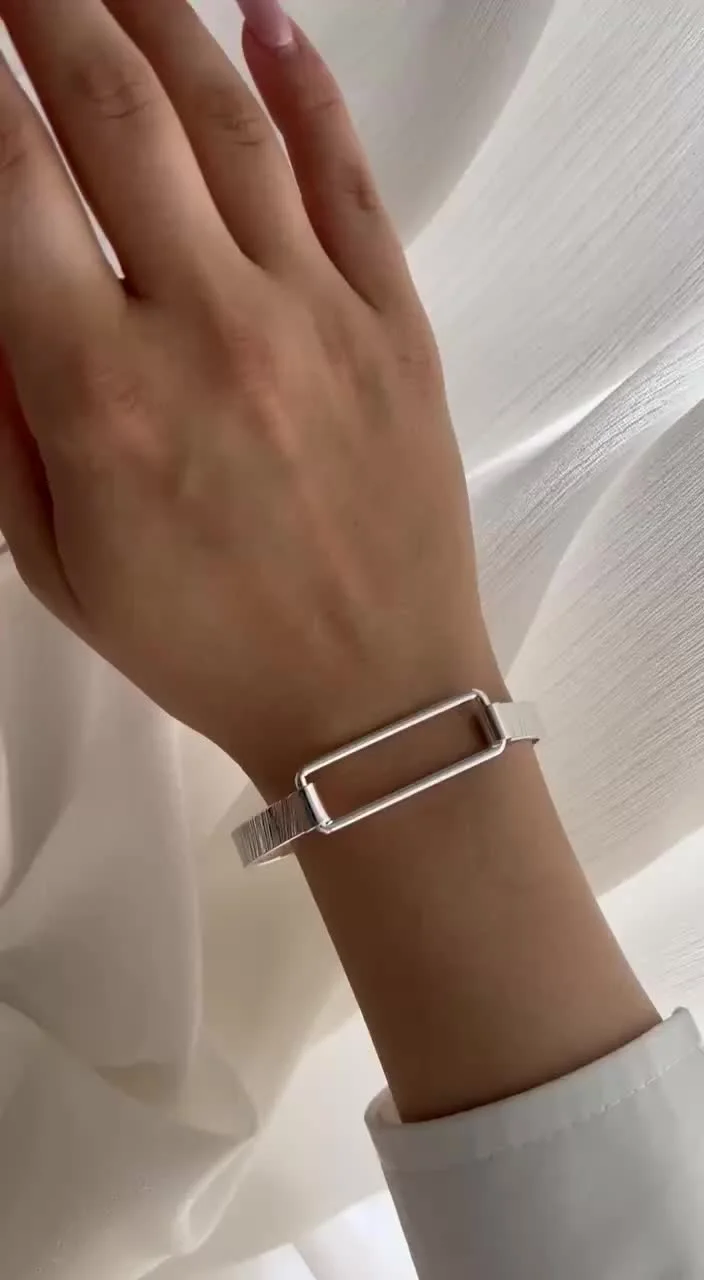 Minimal Silver Bracelet with Modern Textured Design