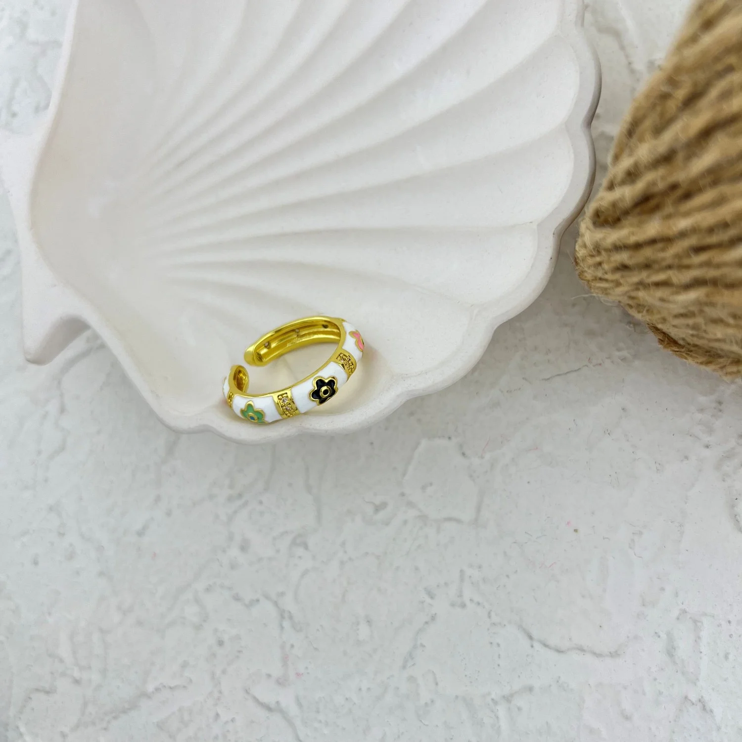 Women's Ring with Colorful Enamel Flower Design