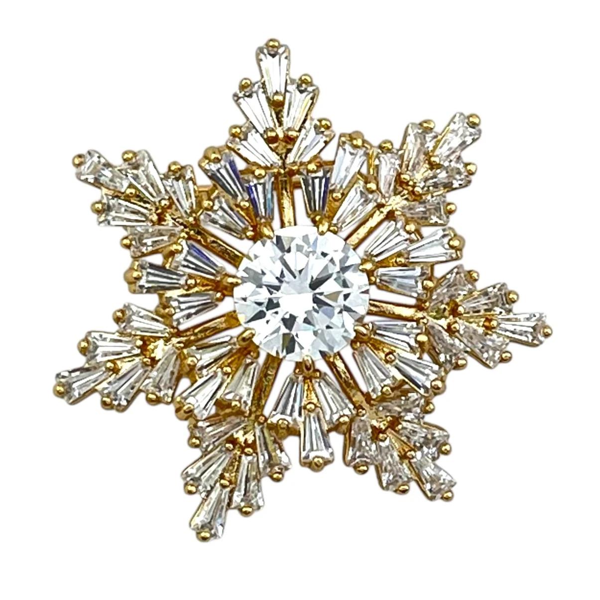 گل سینه زنانه ژوپینگ مدل برفآرا طرح دانهبرف جواهری نگیندار طلایی