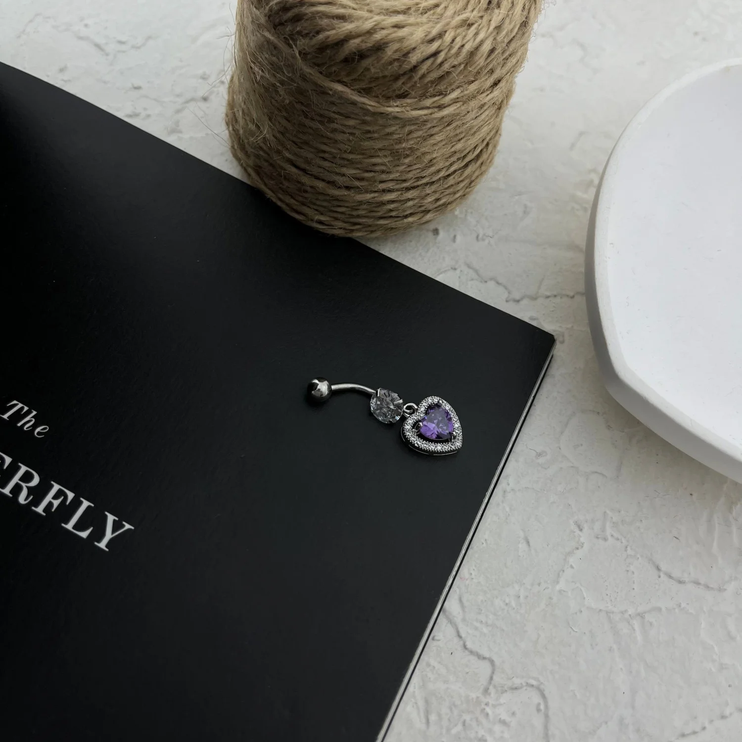 Steel Navel Piercing with Purple Heart Gem