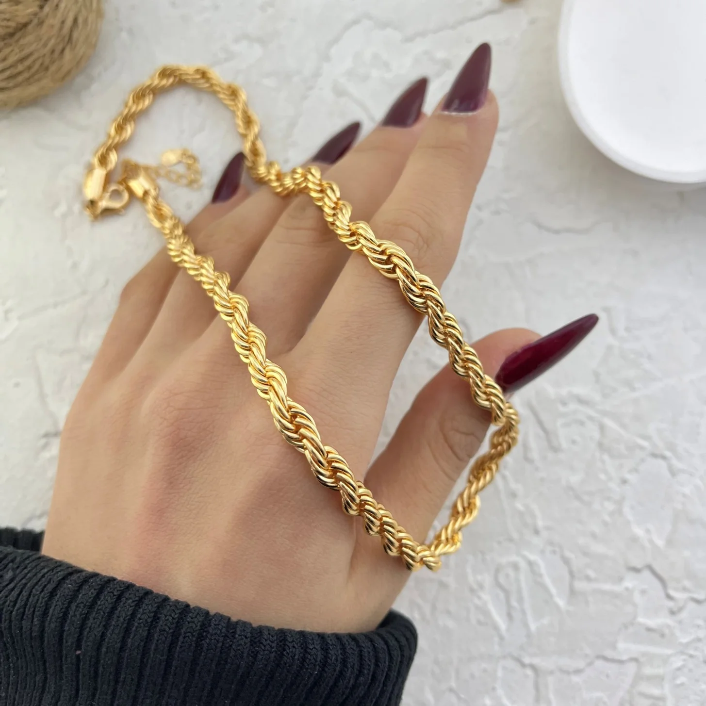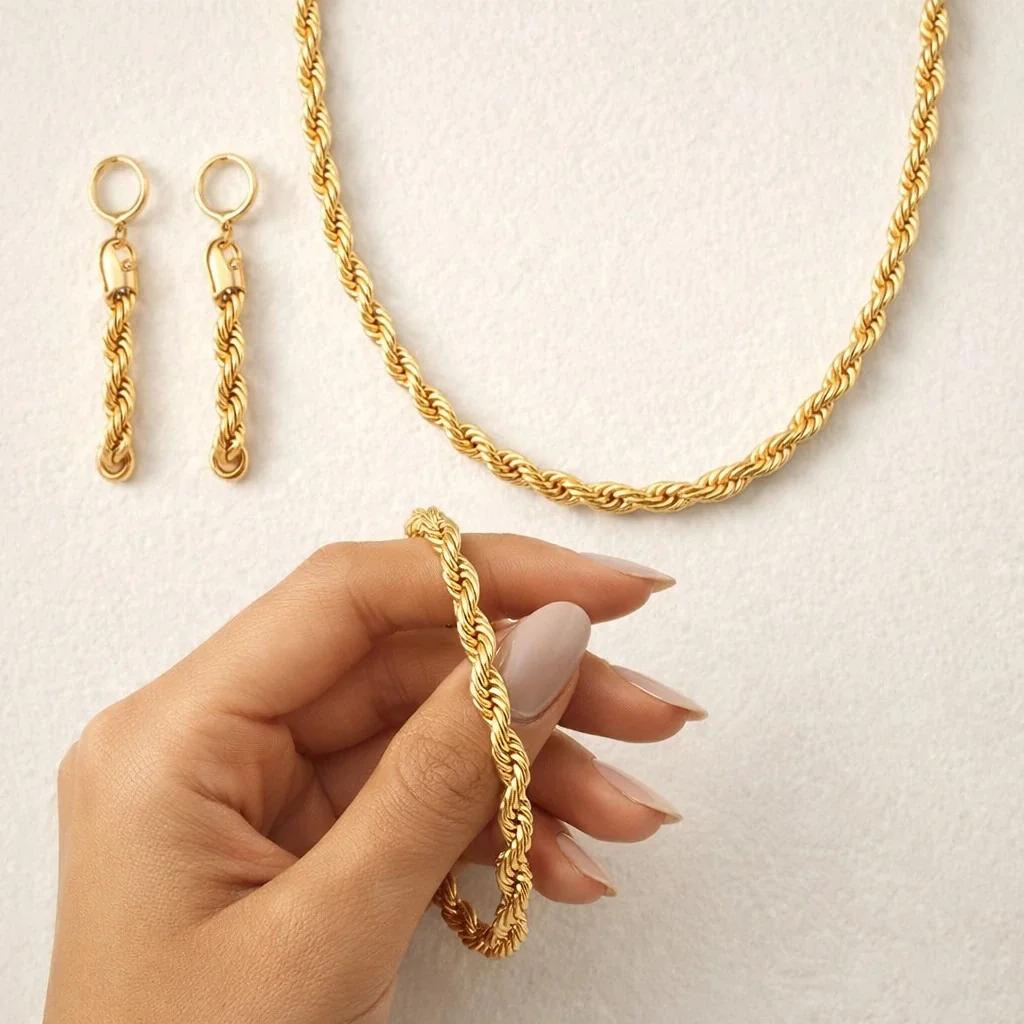 Women's Jewelry Set "Aurelia Rope" - Gold-Tone Rope Chain Necklace, Bracelet & Dangle Earrings