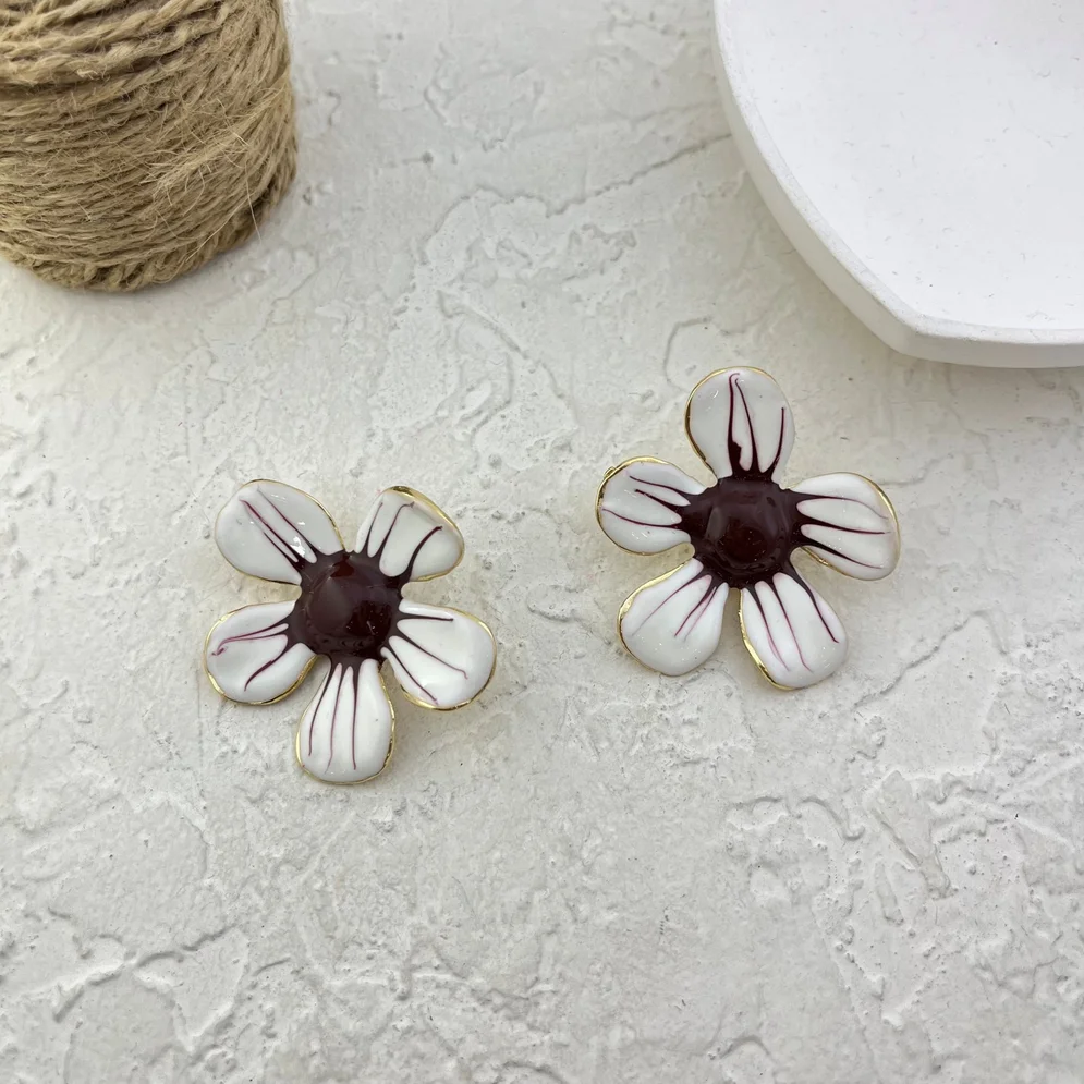 گوشواره زنانه مدل مارلیا طرح گل مینیمال با گلبرگهای سفید