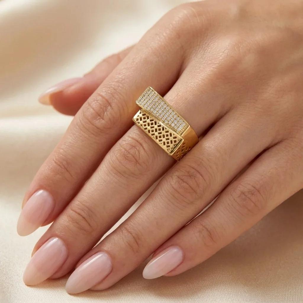 این انگشتر نه تنها یک اکسسوری زیبا است، بلکه نمادی از سلیقه و شخصیت شماست. با داشتن این انگشتر، در هر جمعی خواهید درخشید و نگاه ها را به خود خیره خواهید کرد. طراحی مدرن این انگشتر، آن را به انتخابی ایده آل برای خانم هایی تبدیل کرده است که به دنبال اکسسوری های خاص و متفاوت هستند.