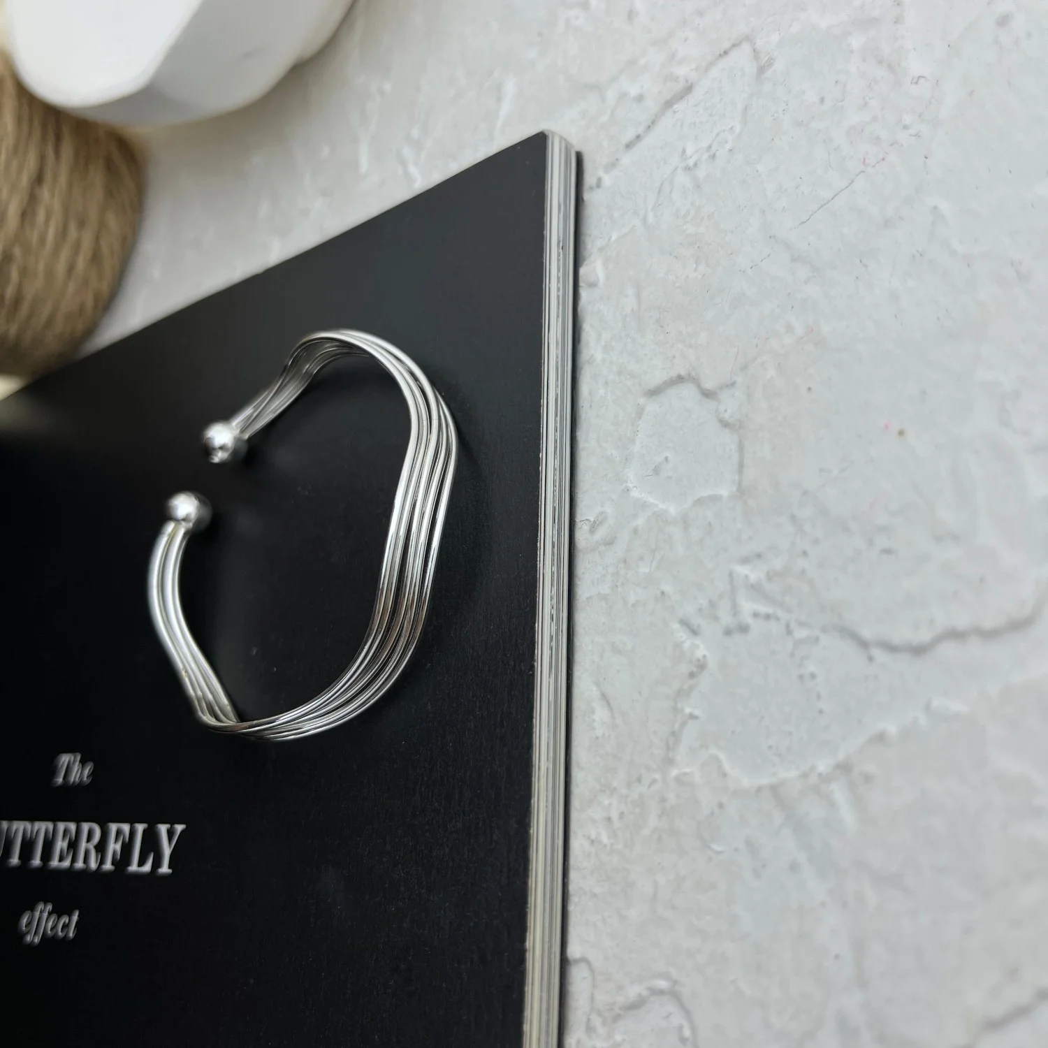 Women's Bangle Bracelet "Flovelle" - Elegant Silver Flow-Wave Minimalist Design