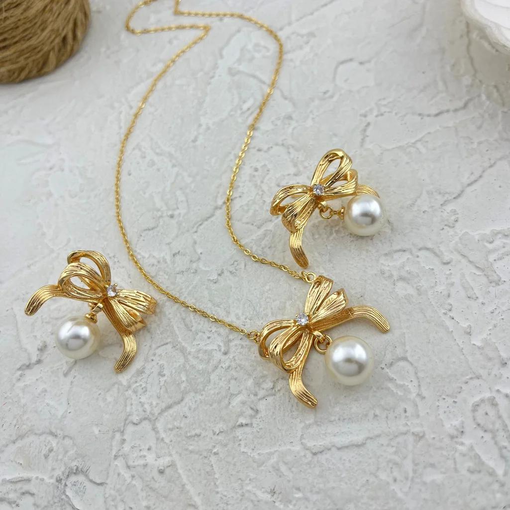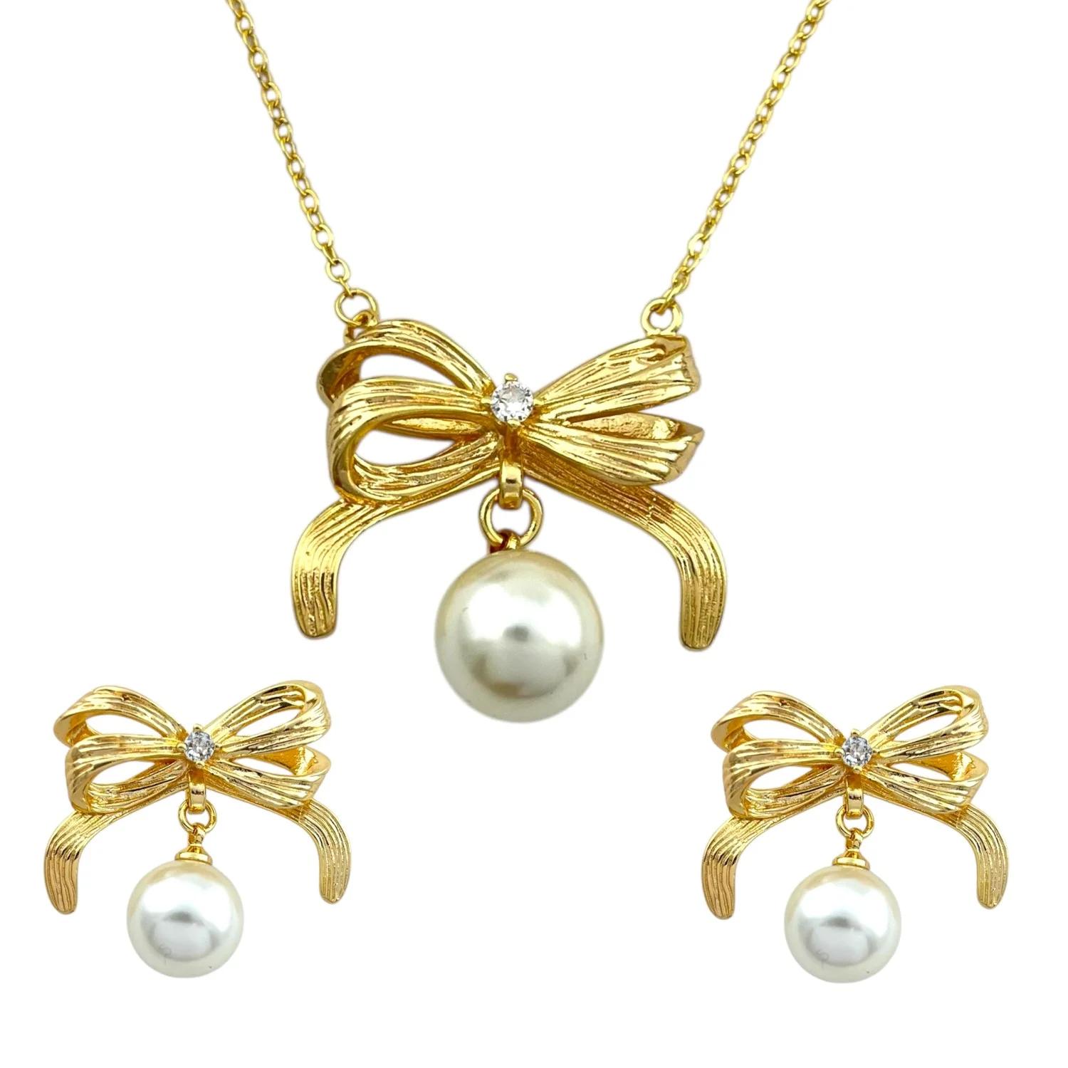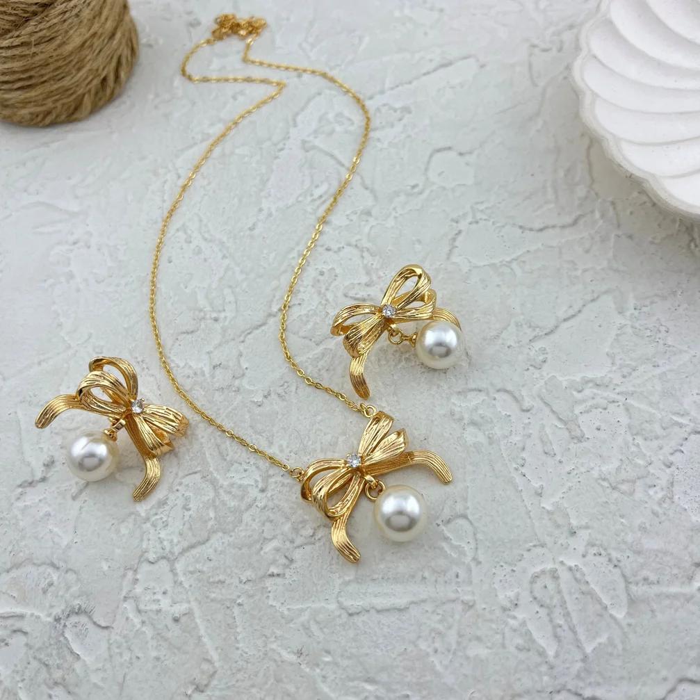 نیم ست زنانه شیک با طرح پاپیون مروارید