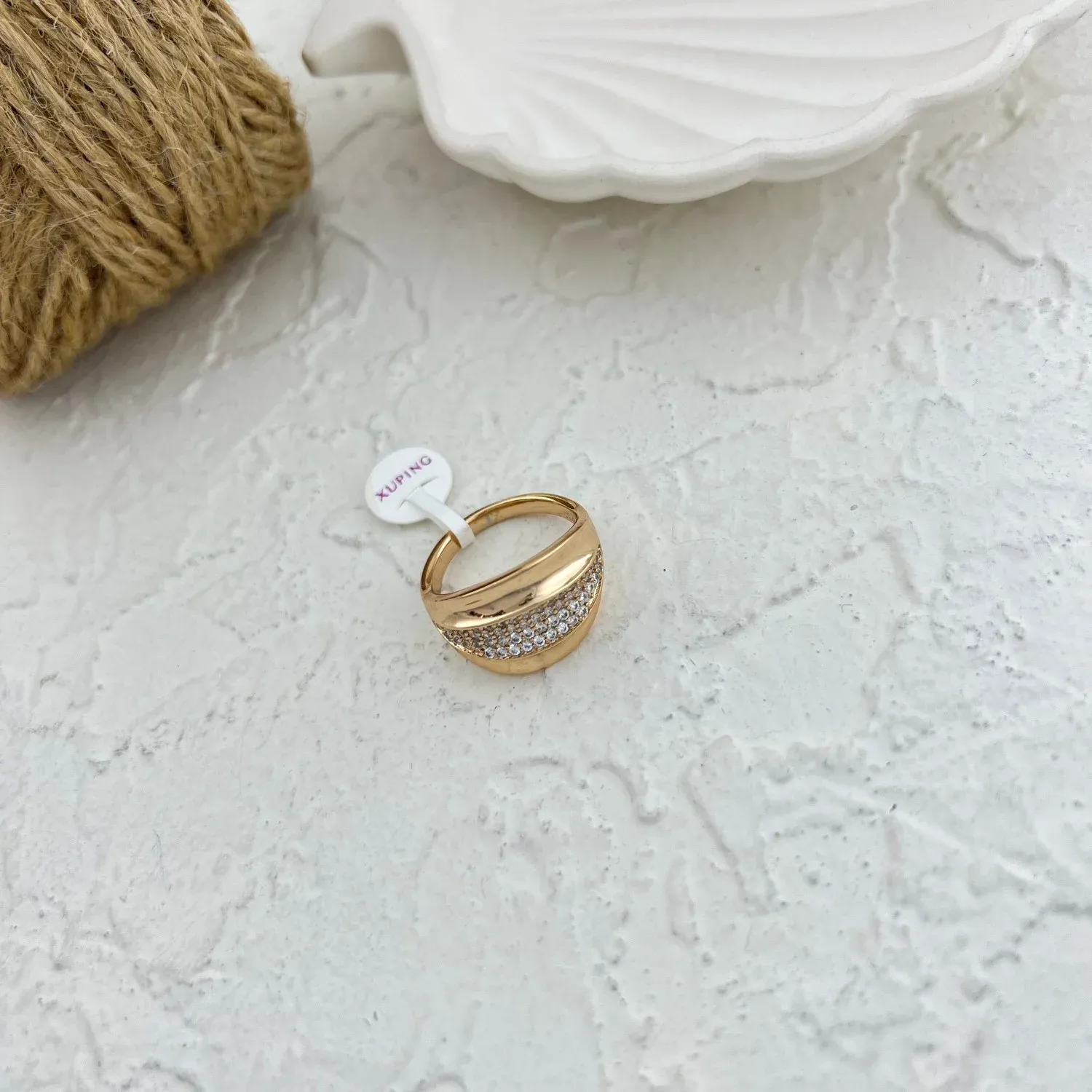 Women's Ring with Linear Rhinestone Design by Xuping