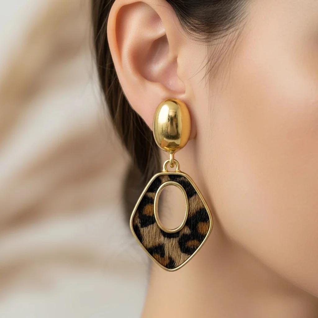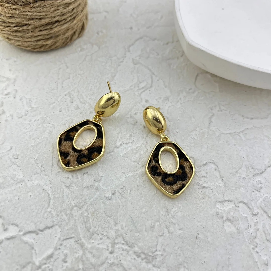 Women's Drop Earrings "Pantera Drop" - Leopard Print Design with Gold Frame
