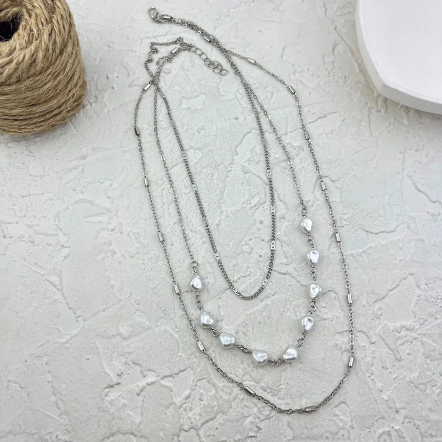 گردنبند زنانه سه لاین با طراحی ظریف و مرواریدهای درخشان، انتخابی ایده‌آل برای تکمیل استایل روزمره و مجلسی شماست. این گردنبند با طراحی خاص خود، به گردن شما جلوه‌ای زیبا می‌بخشد و به راحتی با انواع لباس‌ها ست می‌شود.