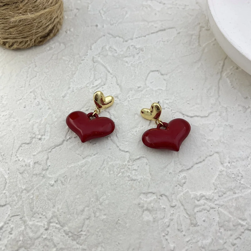 Women's Earrings "Larisa" - Red Heart Drop Design with Golden Accents