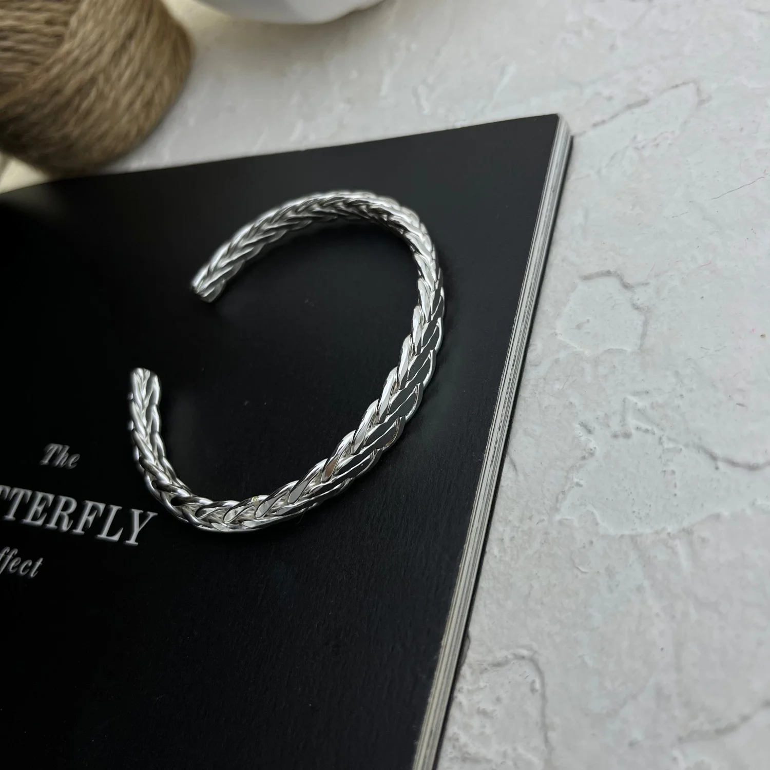 Women's Bangle Bracelet "Brailune" - Moon-Silver Braided Pattern