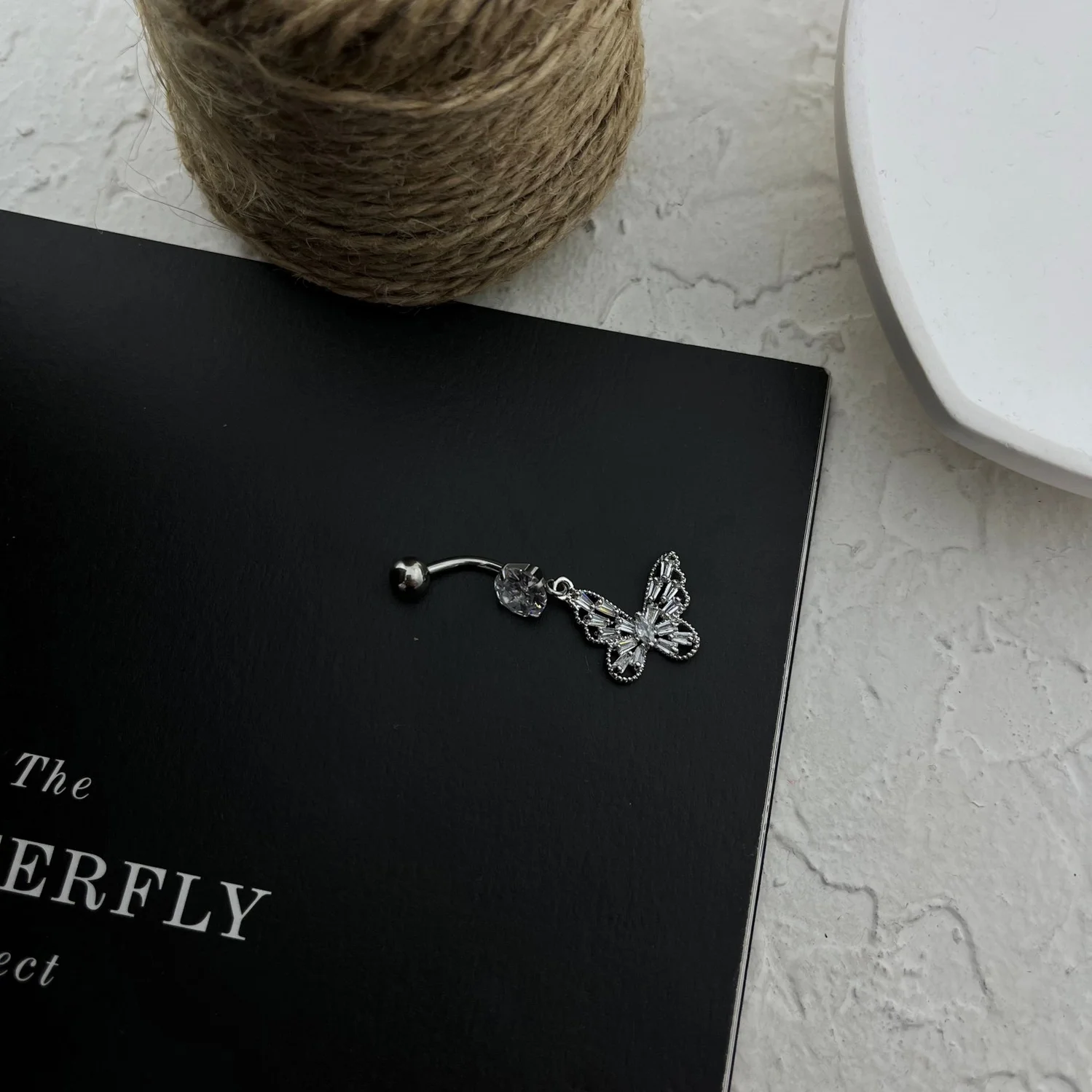 پیرسینگ ناف زنانه استیل طرح پروانه نگیندار