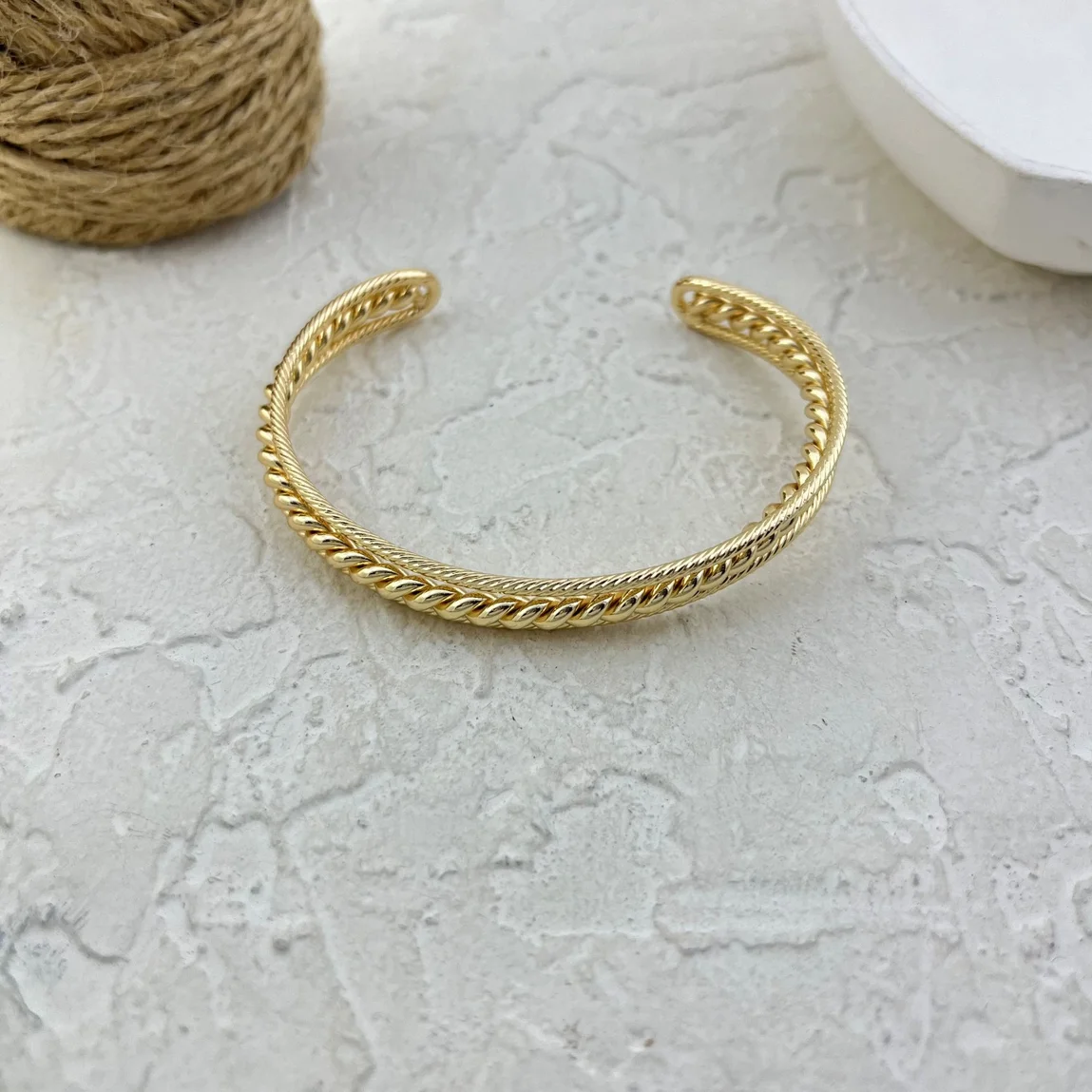 Women's Bangle Bracelet "Rophaline" - Delicate Gold Rope Pattern