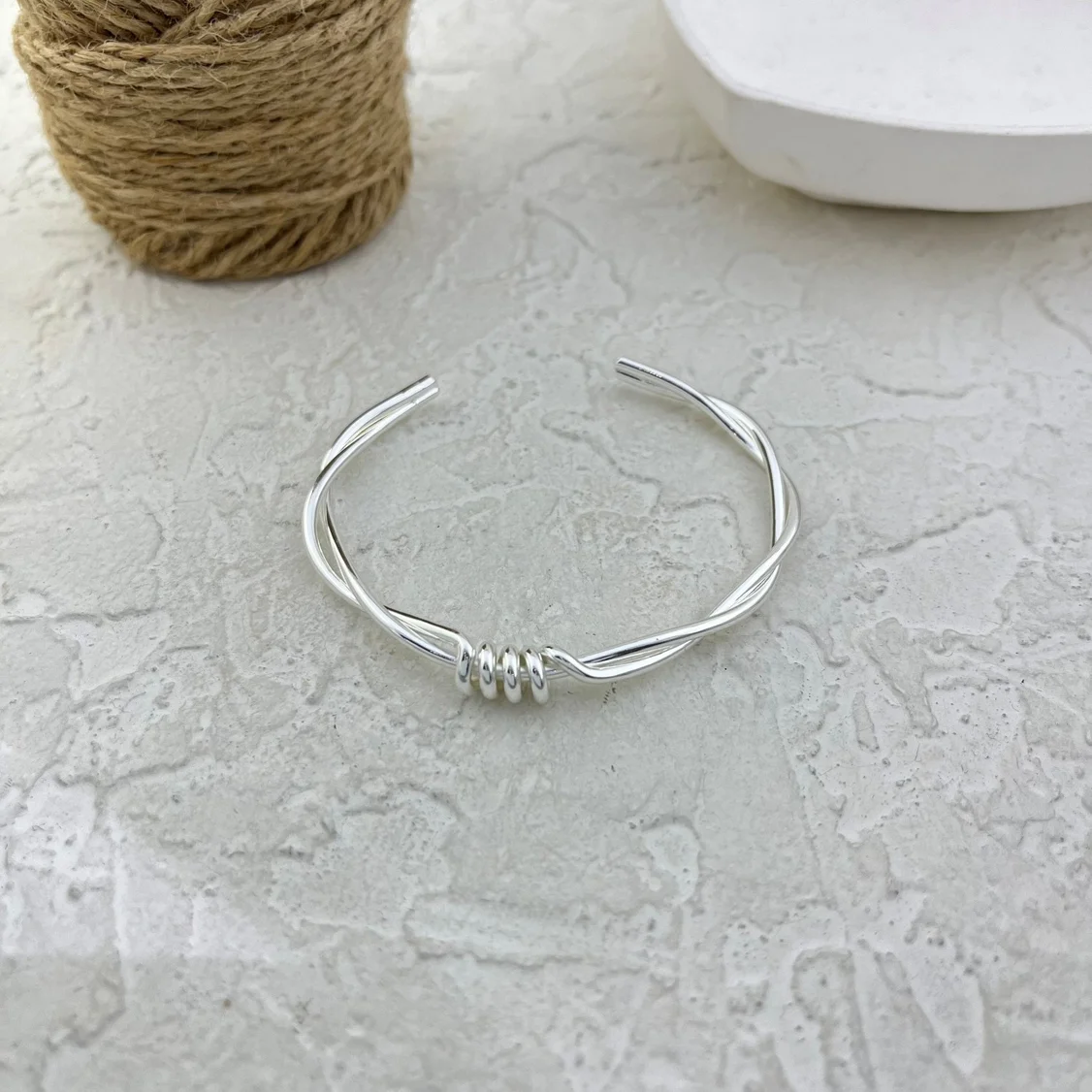 Women's Bangle Bracelet "Twisella" - Modern Silver Twist-Knot Pattern